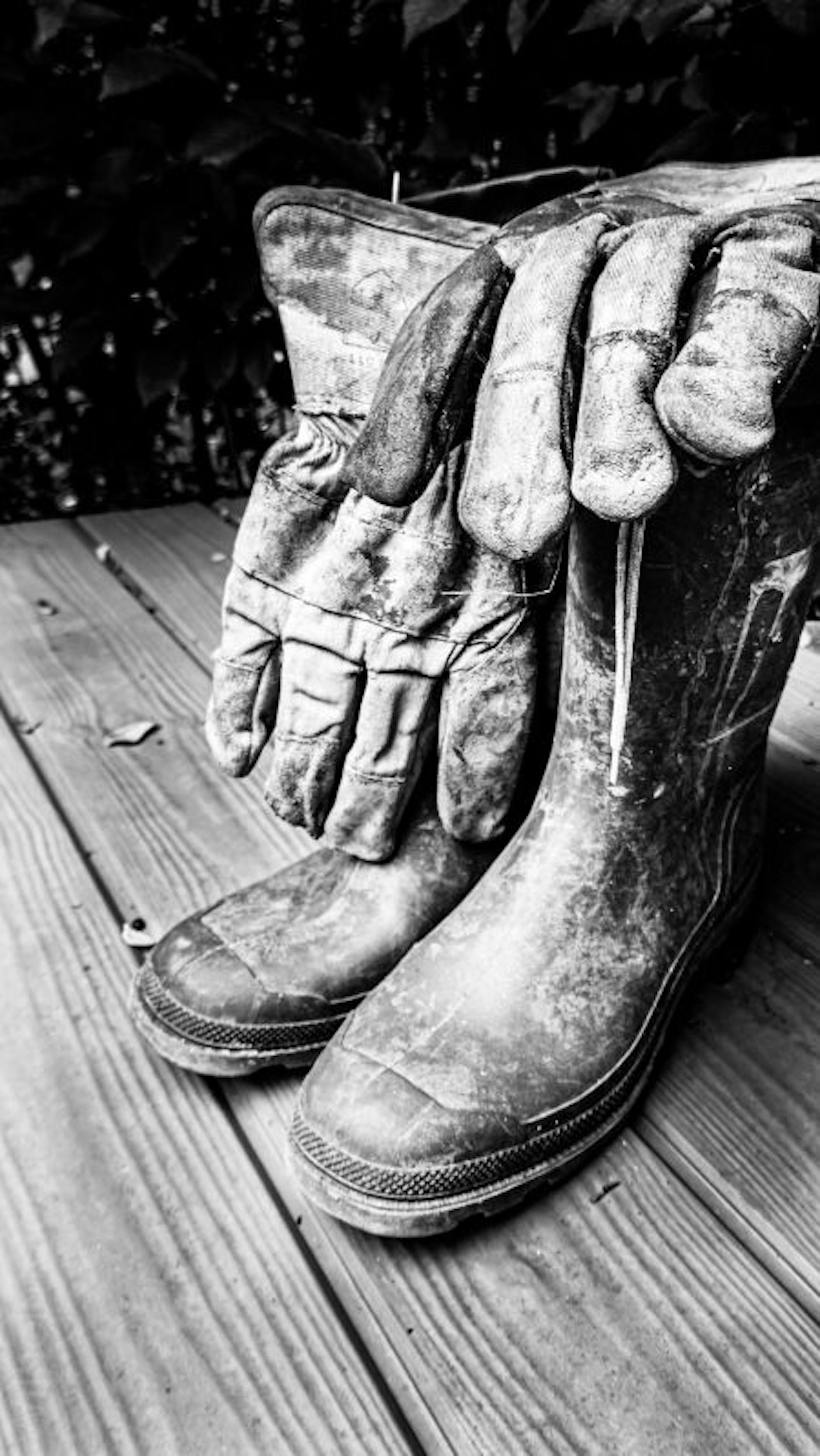 Nach seinem Hilfseinsatz in Erftstadt-Blessem stellte Willi Goertz Stiefel und Arbeitshandschuhe auf der Terrasse ab. Tage später erkannte er das Motiv.