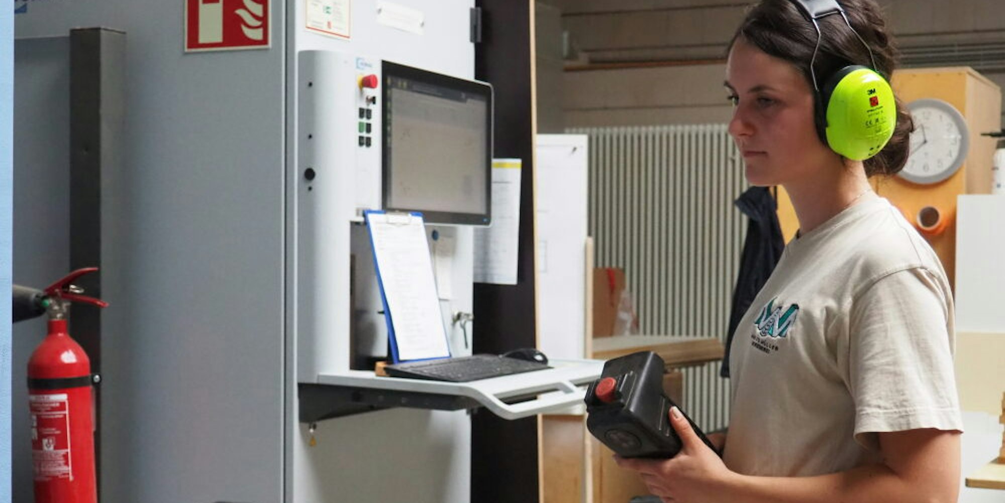 Annika hat die computergesteuerte Fräse im Blick. Die 23-Jährige war die beste Tischlergesellin ihres Jahrgangs.