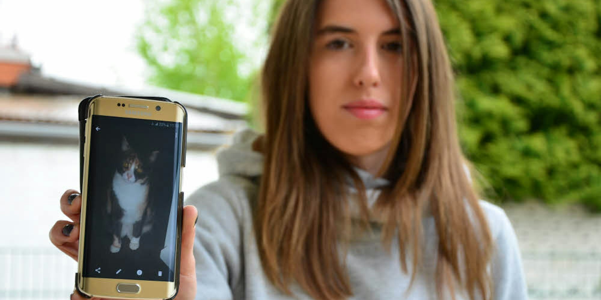 Fotos auf dem Smartphone erinnern Celina Proft an die dreifarbige Kira, die im März verschwand und später tot in einer Mülltüte gefunden wurde.