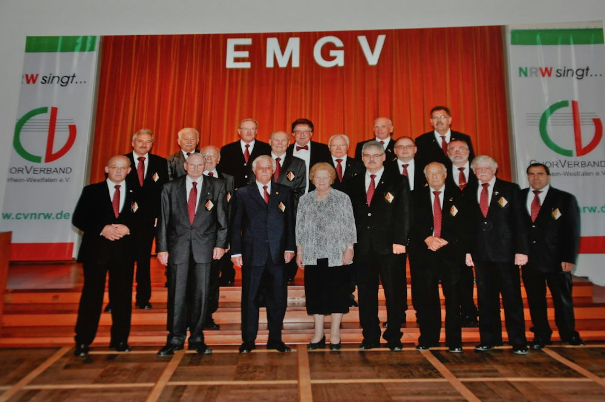 Gegründet wurde der EMGV 1934 als Abspaltung vom Kirchenchor. Familie Mertens mit Johann, Christian, Jean, Rudi und Josef, Josef Ging, Walter Malmen und Theo Behr, der damals zum ersten Vorsitzenden gewählt wurde und dieses Amt ein Vierteljahrhundert lang umsichtig ausübte, waren die Gründer. Erster Chorleiter war der Bedburger Dirigent Nettesheim, wie die Chronik ausweist.