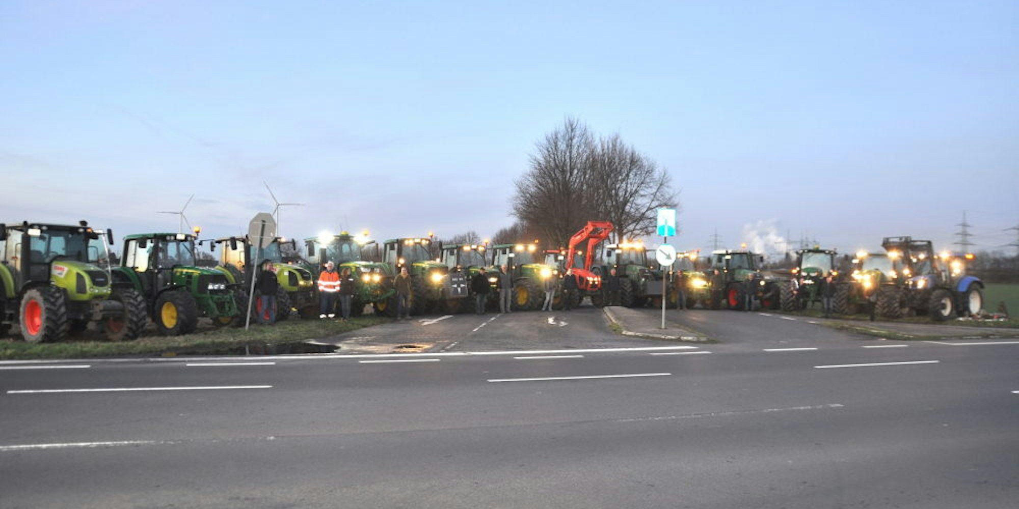Elsdorf – „Wir sind es leid“, brachte Ortslandwirt Karl-Josef Conzen die Stimmung in der Bauernschaft nicht nur in Elsdorf auf den Punkt. Leid sind sie es, „mit Forderungen, Gesetzen und Vorschriften bevormundet zu werden“, sagte Conzen unter dem Beifall seiner Berufskollegen. Mit ihren Traktoren, die sie an der Köln-Aachener Straße aufstellten, protestierten sie still gegen die Agrarpolitik.