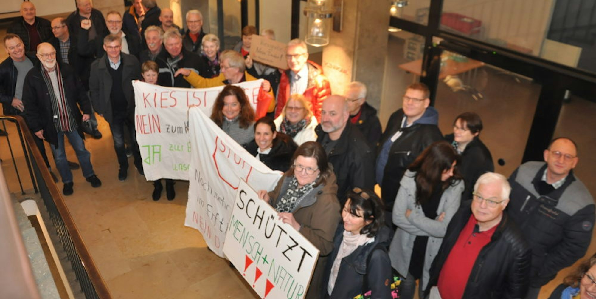 Vor der Sitzung des Regionalrates demonstrierten Heppendorfer und Thorrer Abordnungen gegen die Kiesgrubenpläne.