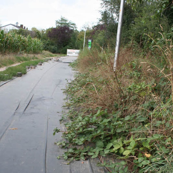 Im März hatte es nach Regenfällen Schwelbrände an den Solarmodulen gegeben, seitdem ist der Radweg unter Planen verpackt. Für Radfahrer wurde provisorisch ein schmaler Kiesweg daneben angelegt. Die 90 Meter lange Teststrecke ist Teil des „Infrastrukturrings Liblar“, einer Route, die Radfahren in Erftstadt attraktiver machen soll.