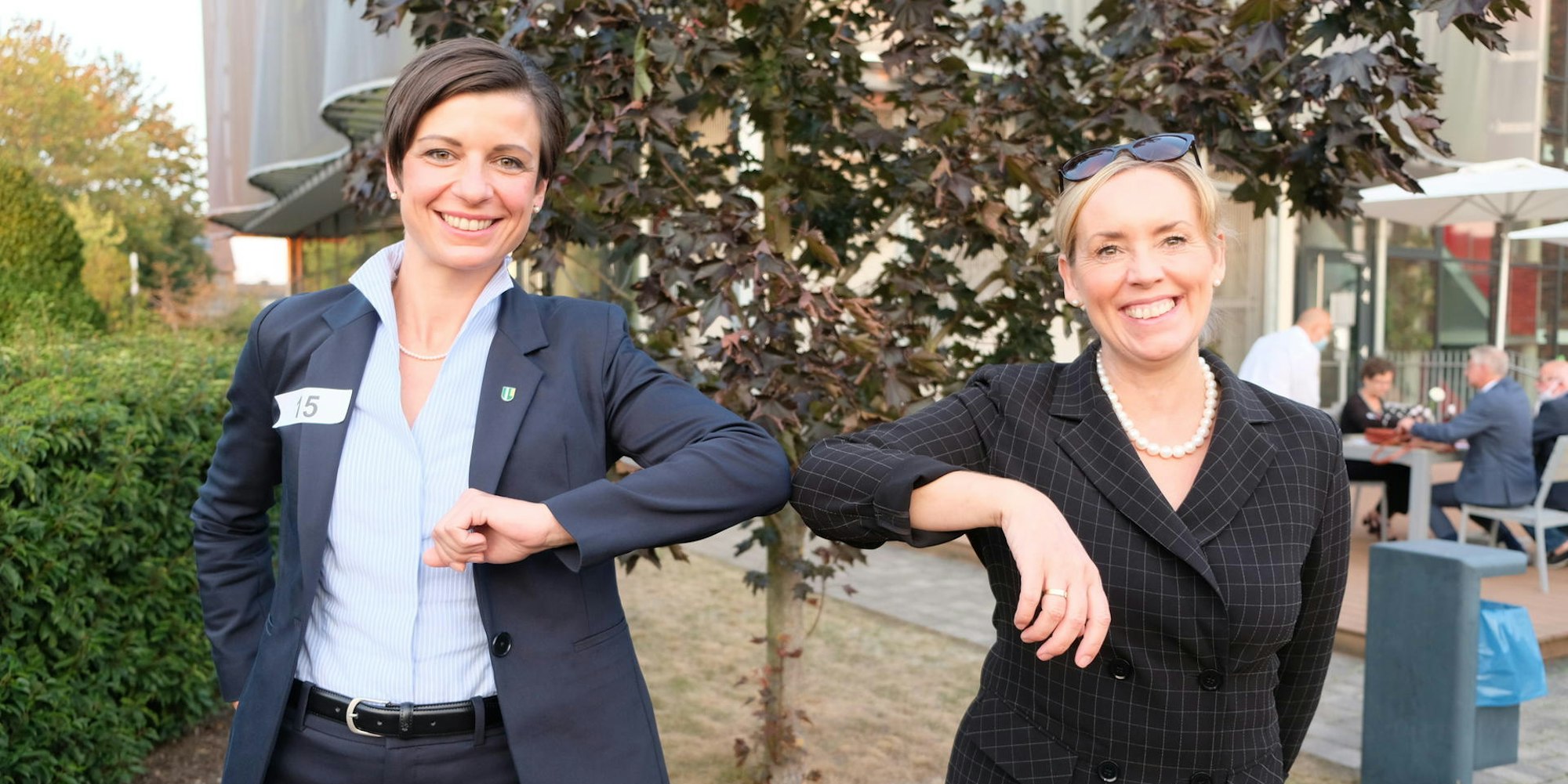 Vor der Stichwahl zur Bürgermeisterin gingen Carolin Weitzel (l.) und Dezernentin Monika Hallstein freundlich miteinander um.