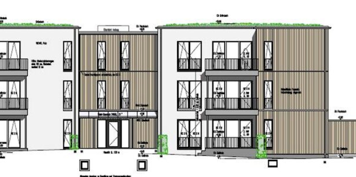 Der vordere Gebäuderiegel wird unterkellert. Für jede der insgesamt zwölf Wohnungen, die jeweils über Balkon oder Terrasse verfügen, wird auch ein Kellerraum zur Verfügung stehen, so Bündgens. Auf insgesamt drei Etagen werden insgesamt 950 Quadratmeter Wohnfläche entstehen. Die Wohnungen haben zwei bis drei Zimmer und sind 64 bis 94 Quadratmeter groß.