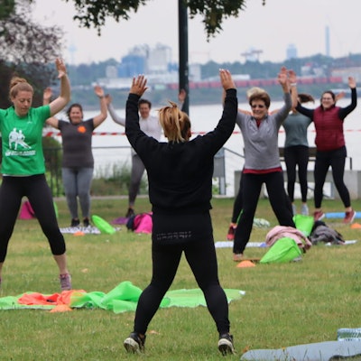 Im Rahmen des Yoga-Festivals des Powerhouse in Erftstadt probiere ich zum ersten Mal Aerial-Yoga aus. Ich bin kein Yoga-Neuling. Hatha- und Vinyasa-Yoga, beides gängige Formen auf der Matte, mache ich schon seit ein paar Jahren. Die Asanas, die verschiedenen Übungen, kenne ich also. An einem Tuch in der Luft zu hängen, ist dagegen eine neue Erfahrung. Und schnell merke ich: Mit dem klassischen Yoga hat diese Form nicht viel zu tun. Das Ein- und Ausatmen und die Konzentration ganz auf sich und den Körper, essenzielle Bestandteile beim Yoga auf der Matte, spielen beim Aerial-Yoga eine untergeordnete Rolle. Zumindest in der Anfangszeit. Stattdessen wird sehr viel geredet.