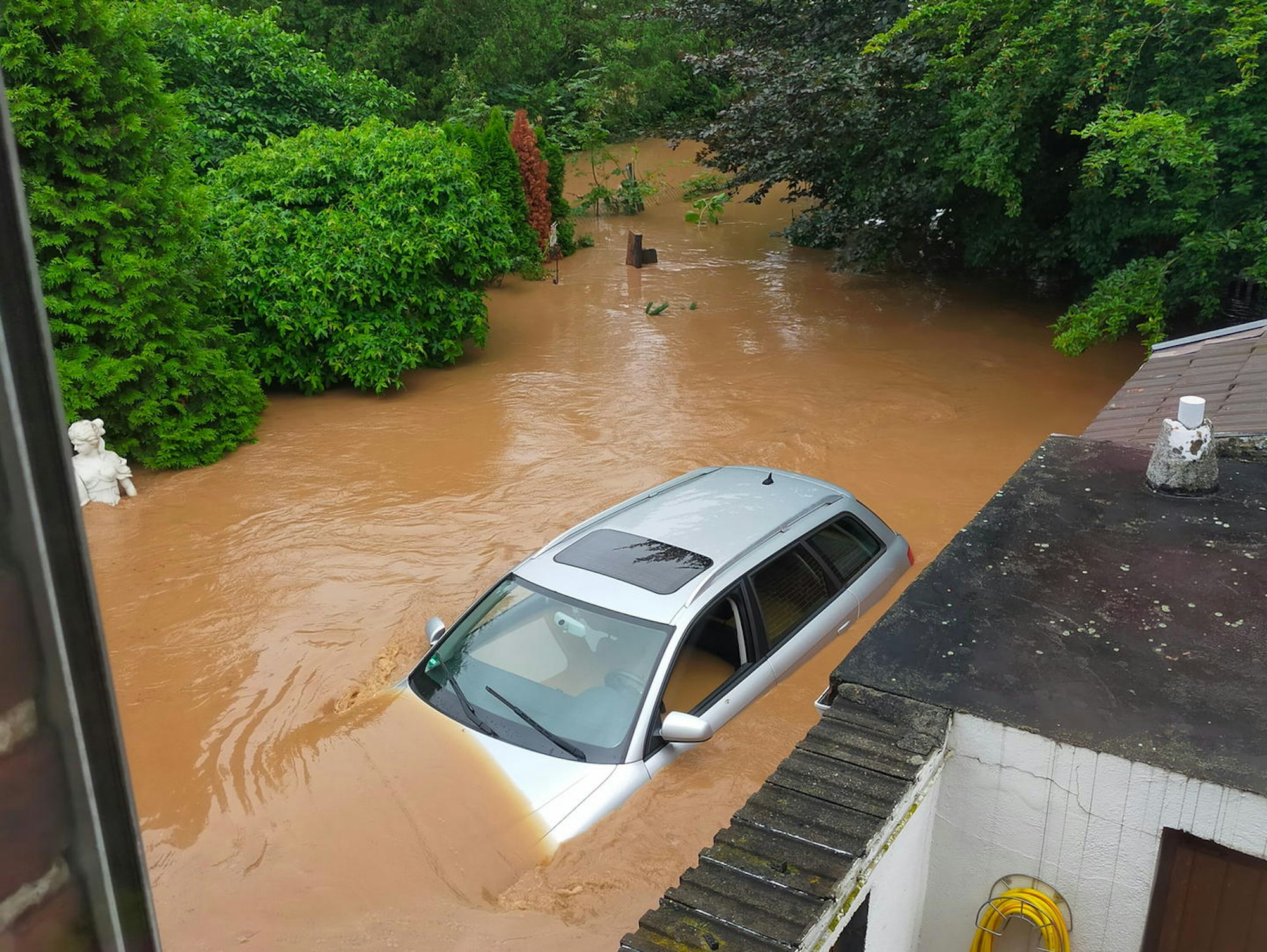 Willems hatte beim Hochwasser seiner Vermieterin geholfen. Das Haus der 86-Jährigen steht quasi am tiefsten Punkt Bliesheims. Mit der polnischen Pflegekraft der alten Dame habe er am Mittwochabend bis Mitternacht versucht, den Keller leer zu pumpen, aber schließlich aufgegeben. Am Morgen habe er gedacht, es sei alles überstanden – „dann kam die Riesenflut“. Am Donnerstagnachmittag seien die drei dann mit dem Hubschrauber gerettet worden: „Wir waren nie in Lebensgefahr. Nur mein Auto ist ertrunken.“