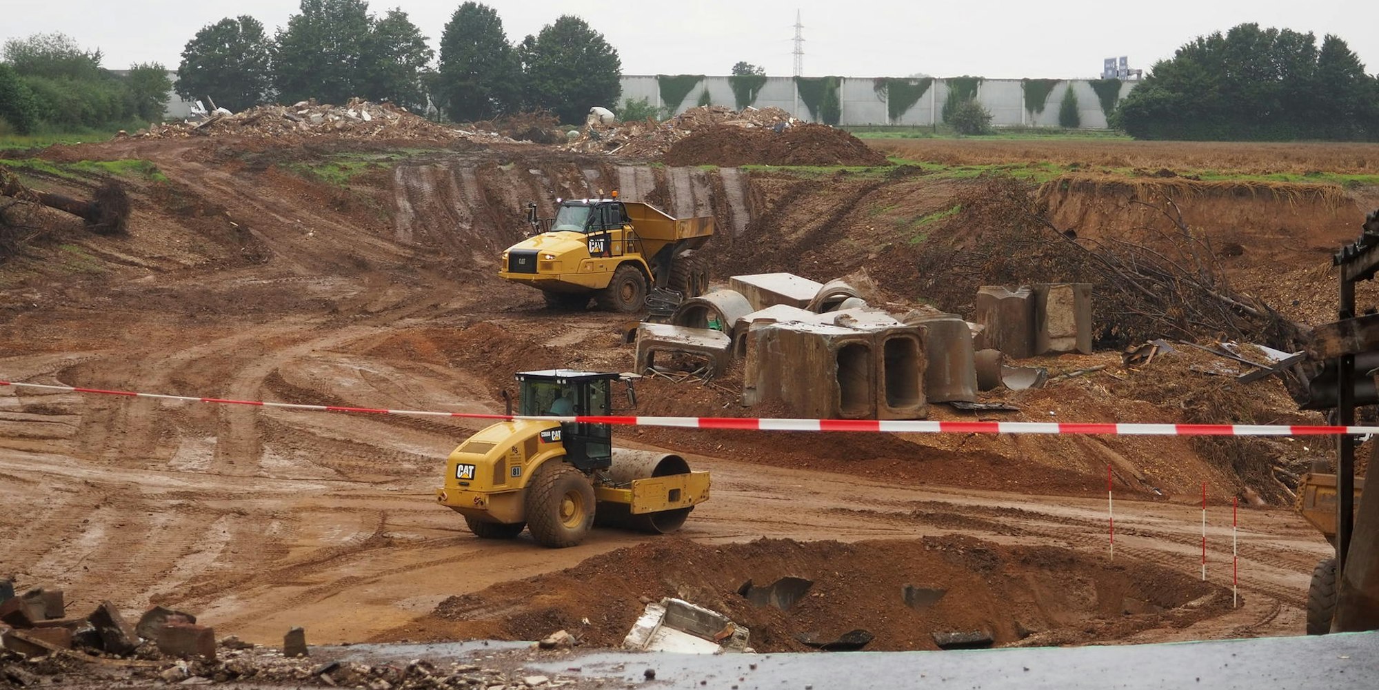 Die Arbeiten an der Abbruchkante in Blessem laufen auf Hochtouren.