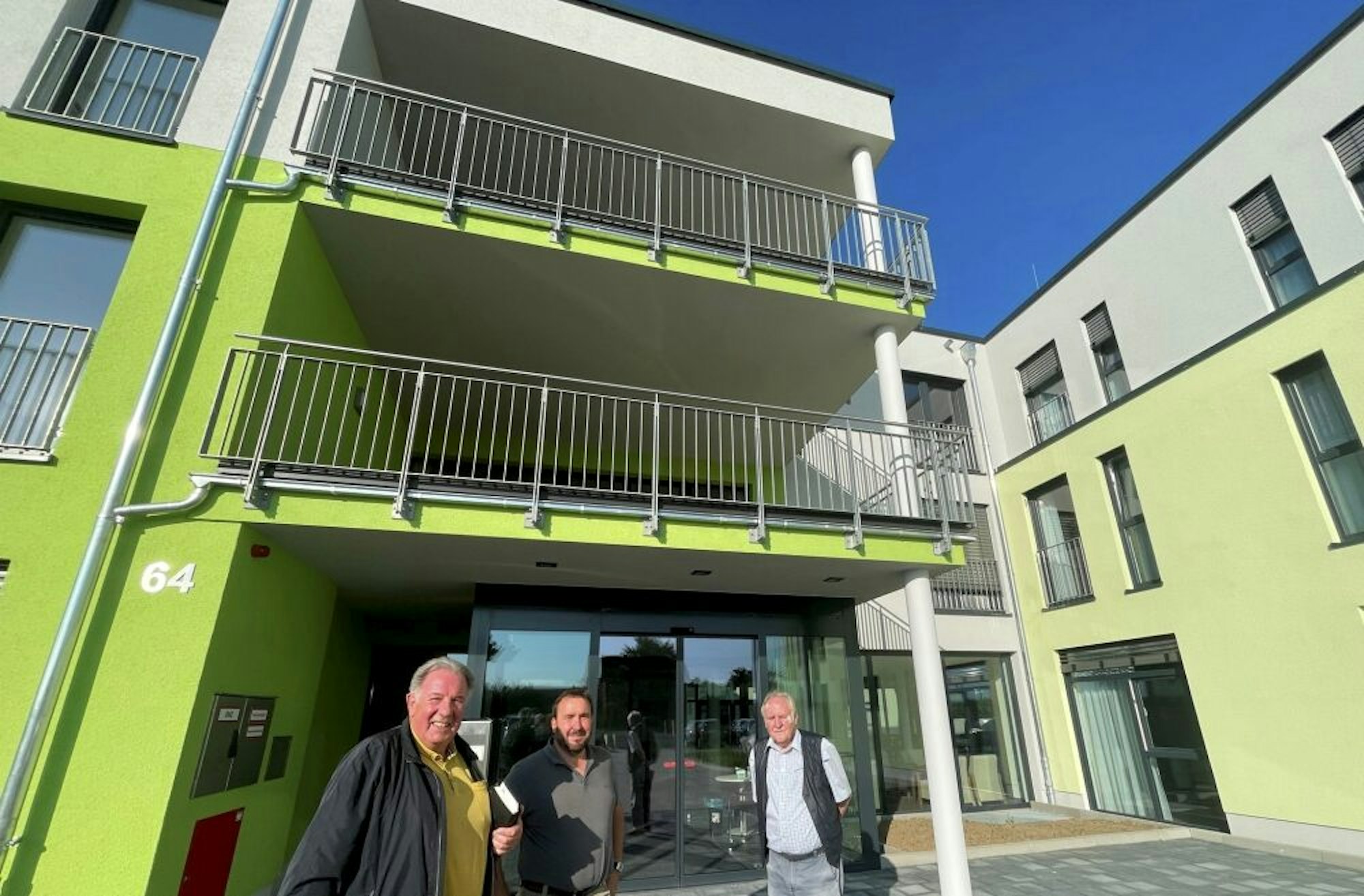 Bezogen wird nach etwa 20-monatiger Bauzeit bis Ende des Jahres auch der Gebäudekomplex für Seniorenwohnen mit 23 Einheiten gleich neben dem neuen Seniorenzentrum. Das Seniorenwohnen wird von Idealquadrath vermarktet. Das Gebäude ist über den Pilgerweg zugänglich.