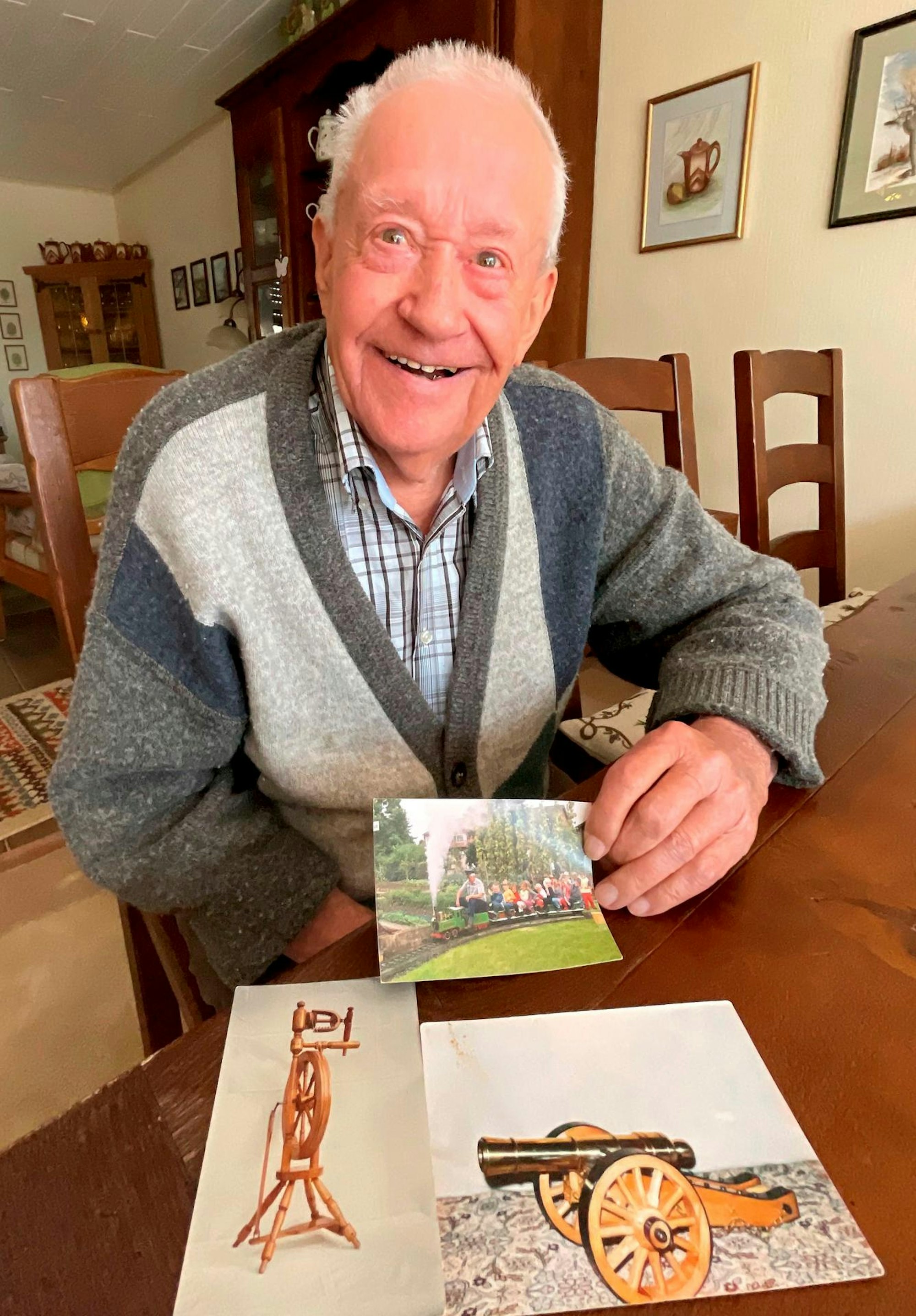 „Ständig wurde ich an neuen Orten eingesetzt. Mir war das zu viel, ich wollte wechseln“, berichtet der Jubilar. So fing er mit 38 bei Shell in Godorf an, wo er 24 Jahre arbeitete. Nach seiner Pensionierung kam keine Langeweile auf. Er formte, drechselte, feilte: Miniaturkanonen genauso wie Spinnräder.