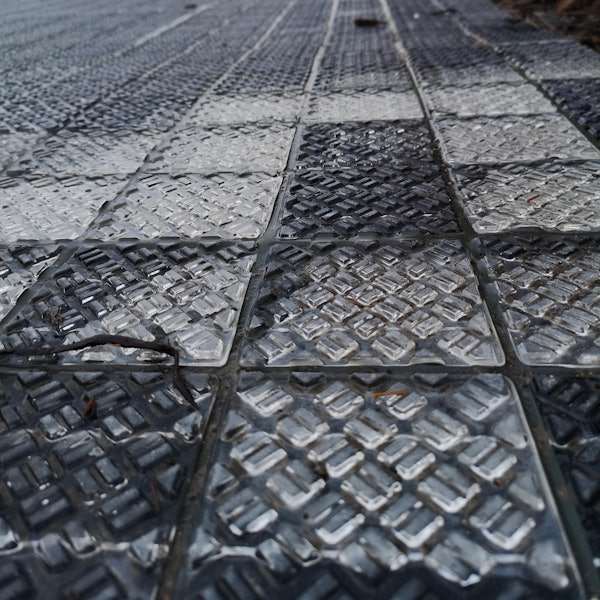 Eine dicke und schwarze Plastikfolie bedeckt derzeit die Solarmodule auf dem Solar-Radweg in Erftstadt-Liblar.