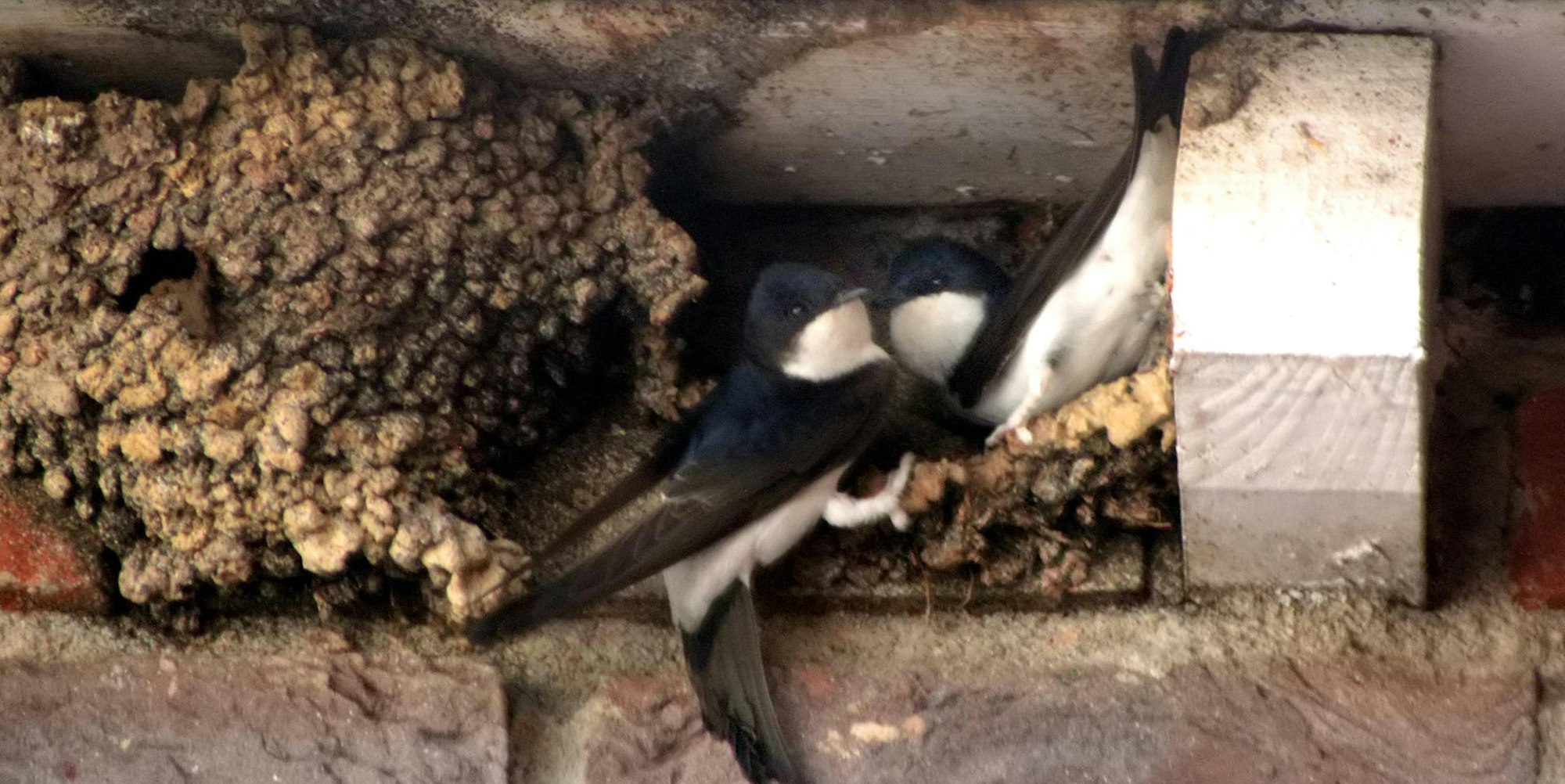 Diese beiden jungen Niederberger Mehlschwalben arbeiten am natürlichen Nestbau, bei dem sie Tausende Matschkügelchen zusammendrücken.