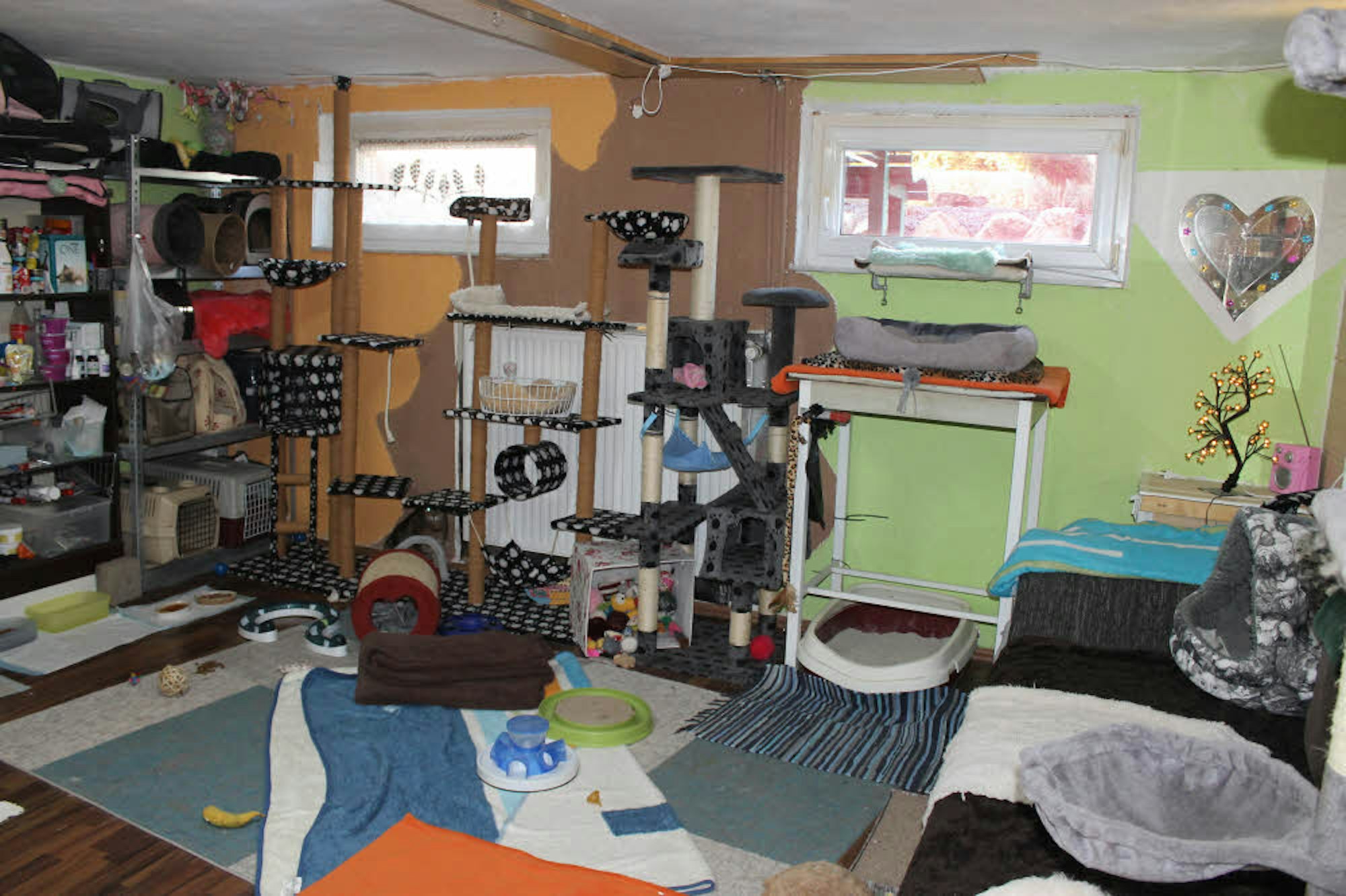 Im Katzenzimmer im Keller des Hauses kümmert sich Hemmersbach um kranke Tiere und um solche, die sich nicht mit den anderen vertragen.