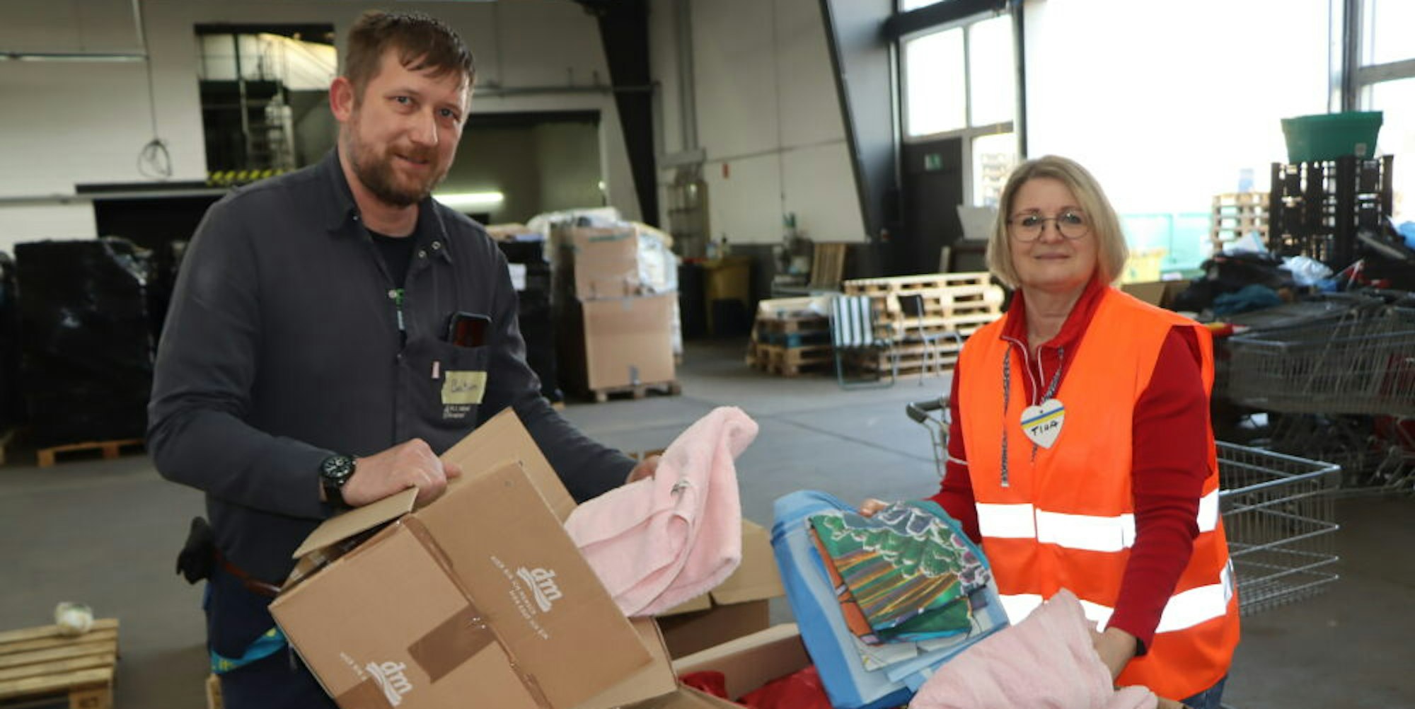 Martina Stupp-Großlau und Bastian Neumann verpacken die Sachspenden für die Partnerstadt Jelenia Góra.