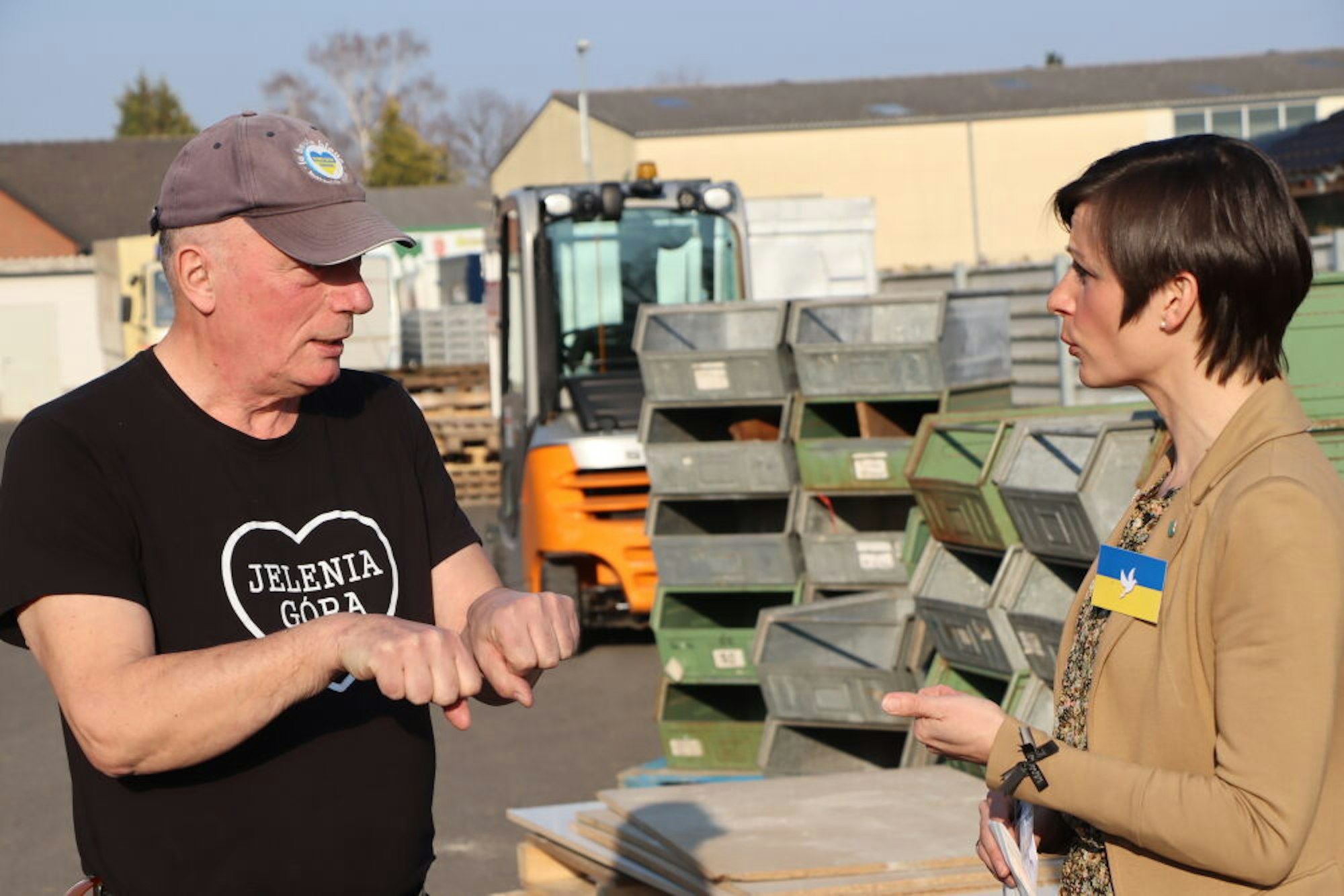 „Schon wenige Tage nach dem Aufruf konnten wir den ersten 40-Tonner, beladen mit 38 Paletten Hilfsgüter, in unsere Partnerschaftsstadt schicken“, berichtete Michael Rosemeyer, der Vorsitzende der Vereins. Zusammen mit Bürgermeisterin Carolin Weitzel schaute er sich am Mittwochnachmittag die Situation im Versorgungszentrum an der Bonner Straße an.