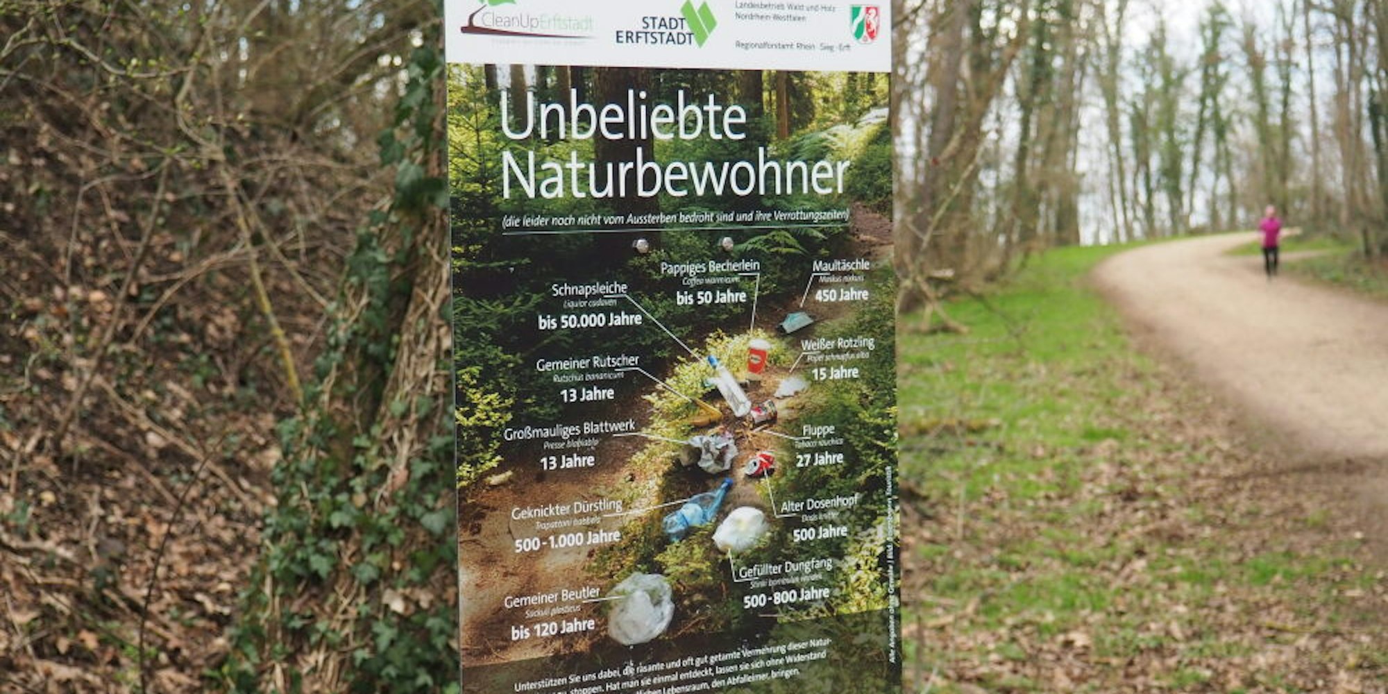 An vielen Stellen in Erftstadt weisen künftig Schilder auf diese „unbeliebten Naturbewohner“ hin. Die Initiative CleanUp Erftstadt wählt den humorvollen Weg, um zu ermahnen, keinen Müll draußen zu hinterlassen. Die Gruppe um Stefanie Schwarz hat im Dezember den Heimatpreis gewonnen und die 2500 Euro Preisgeld gleich wieder in ihre Herzensangelegenheit investiert: den Kampf gegen den wilden Müll in Erftstadt. Den Heimatpreis lobt das Land aus, die Kommunen können daran teilnehmen.