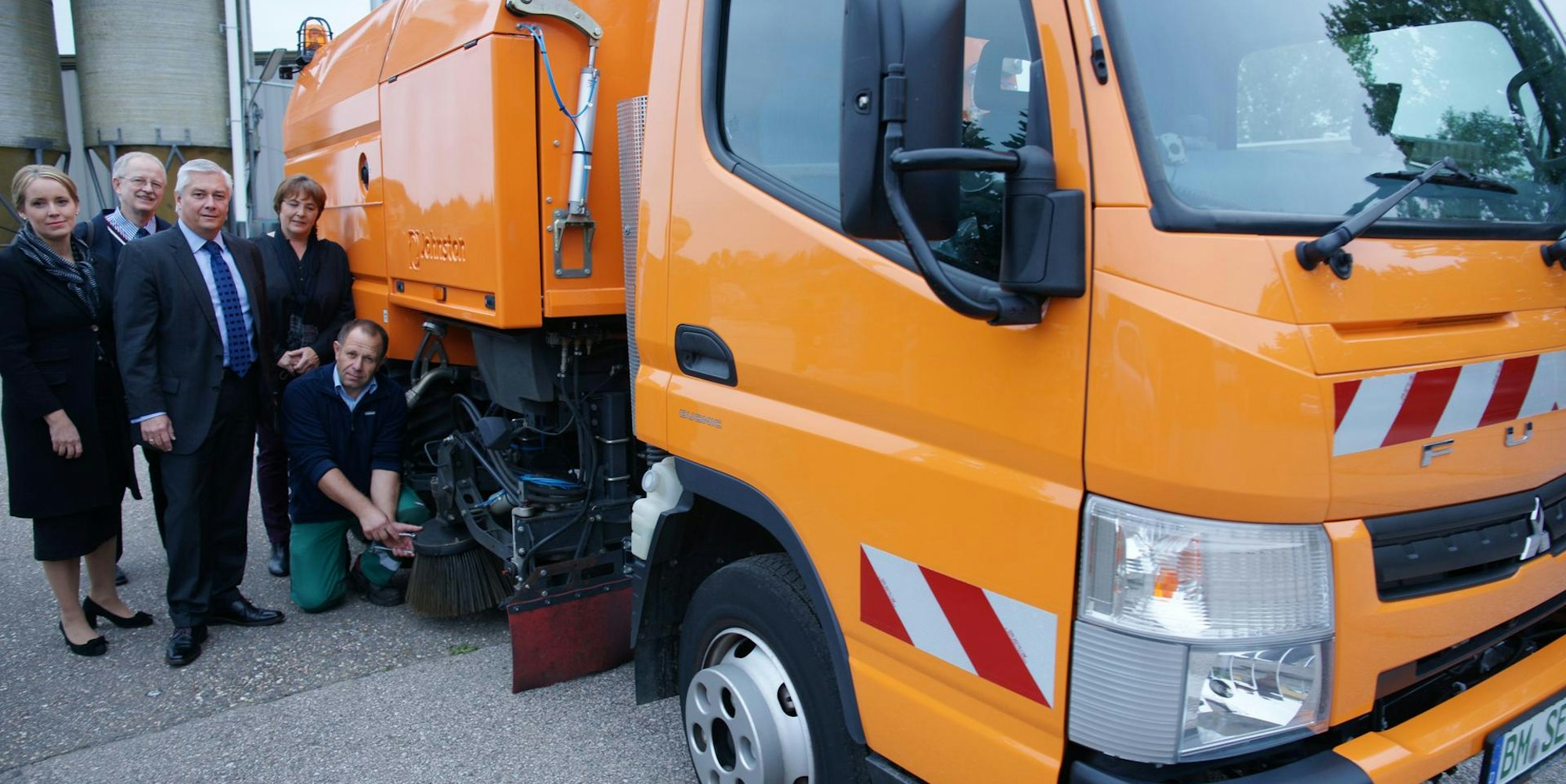 Stolz wurde 2014 das neue Reinigungsfahrzeug präsentiert.
