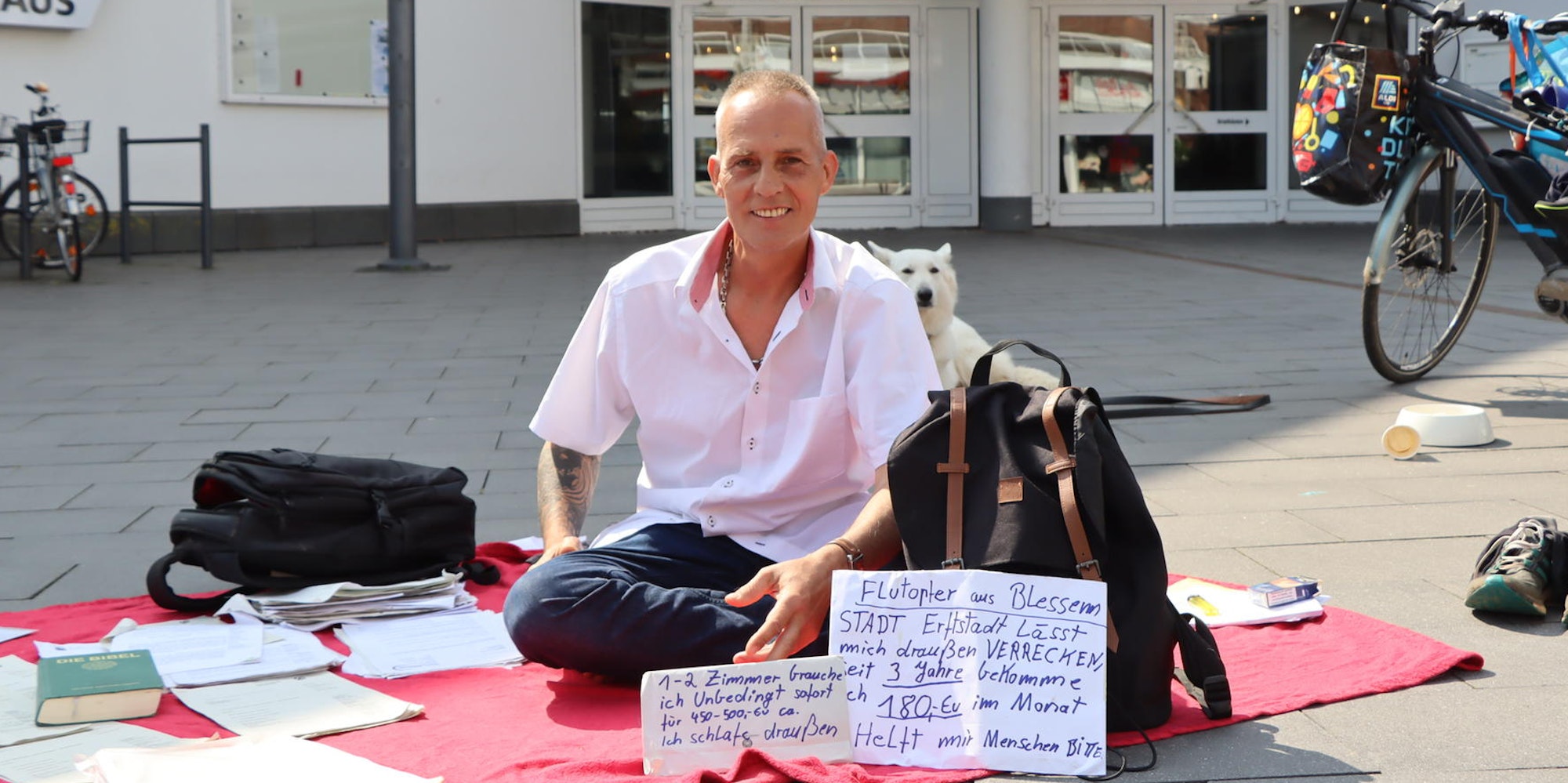 Etlichen Passanten habe er schon seine Geschichte erzählt und geschildert, wie er in diese Lage geraten sei: „Ich konnte die Kosten für mein Haus schon lange nicht mehr aufbringen“, erklärt er. Seit mehr als drei Jahren suche er eine kleinere Wohnung in Erftstadt. „Mir reichen 45 Quadratmeter“, betont er. Die Stadt zahle ihm den festgelegten Satz der Grundsicherung.