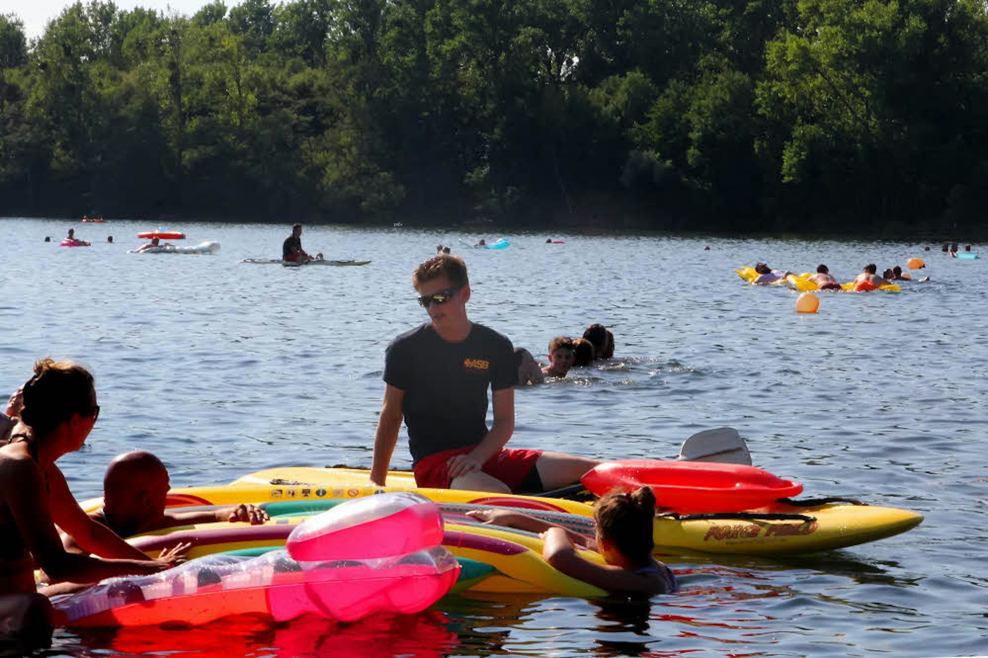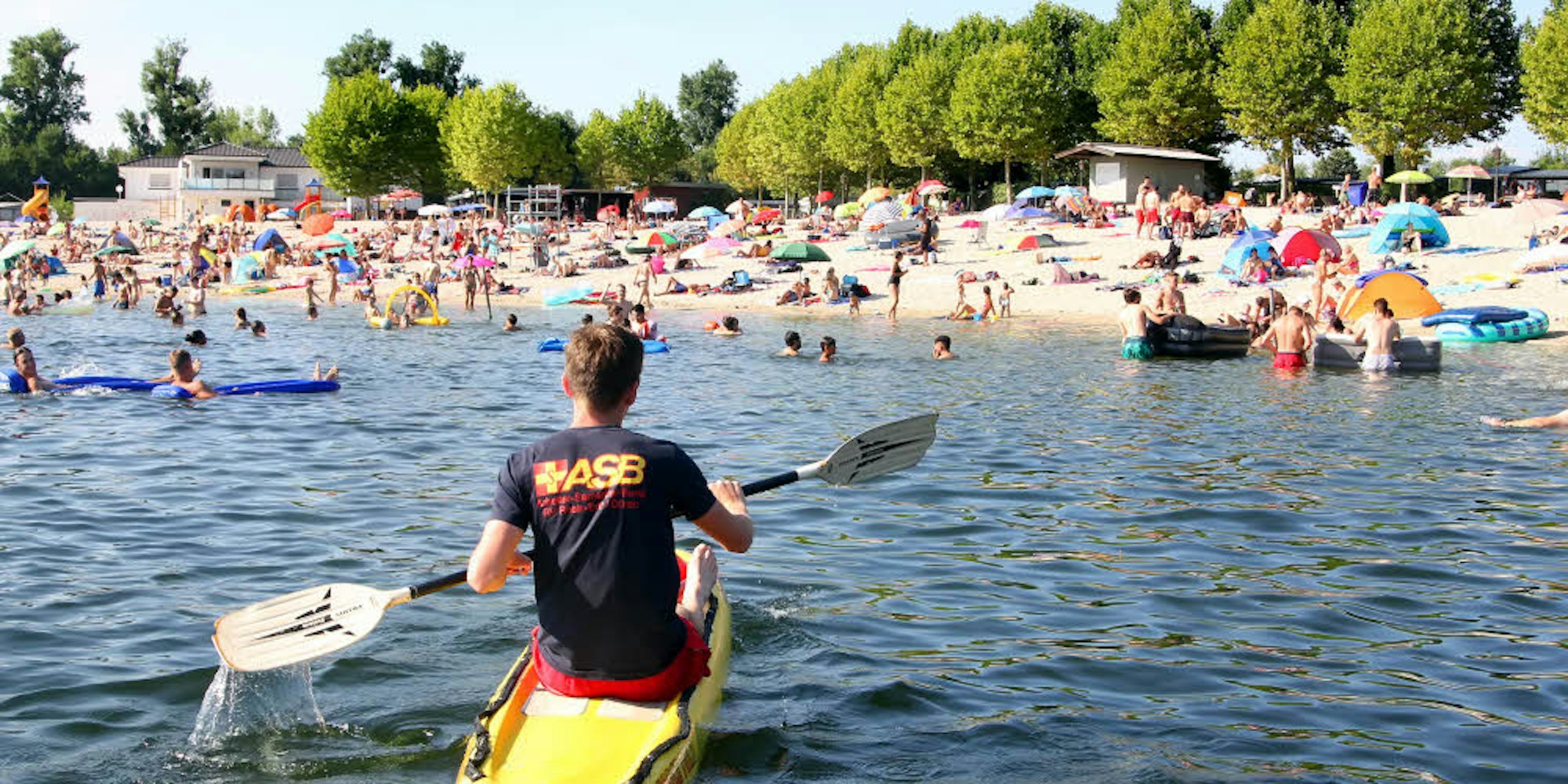 Um im ganzen Getümmel den Überblick zu behalten, ist allerdings permanent höchste Aufmerksamkeit gefragt. Während zwei Helfer die Szenerie vom Steg aus mit Ferngläsern überblicken, sind ein oder zwei weitere Einsatzkräfte mit Surfbrettern auf dem Wasser unterwegs. Für den See seien die schnellen und wendigen Bretter besser geeignet als Boote, sagen die ASB-Leute, die allesamt das Rettungsschwimmerabzeichen in Silber oder in Gold sowie eine Rettungshelferausbildung vorweisen können.
