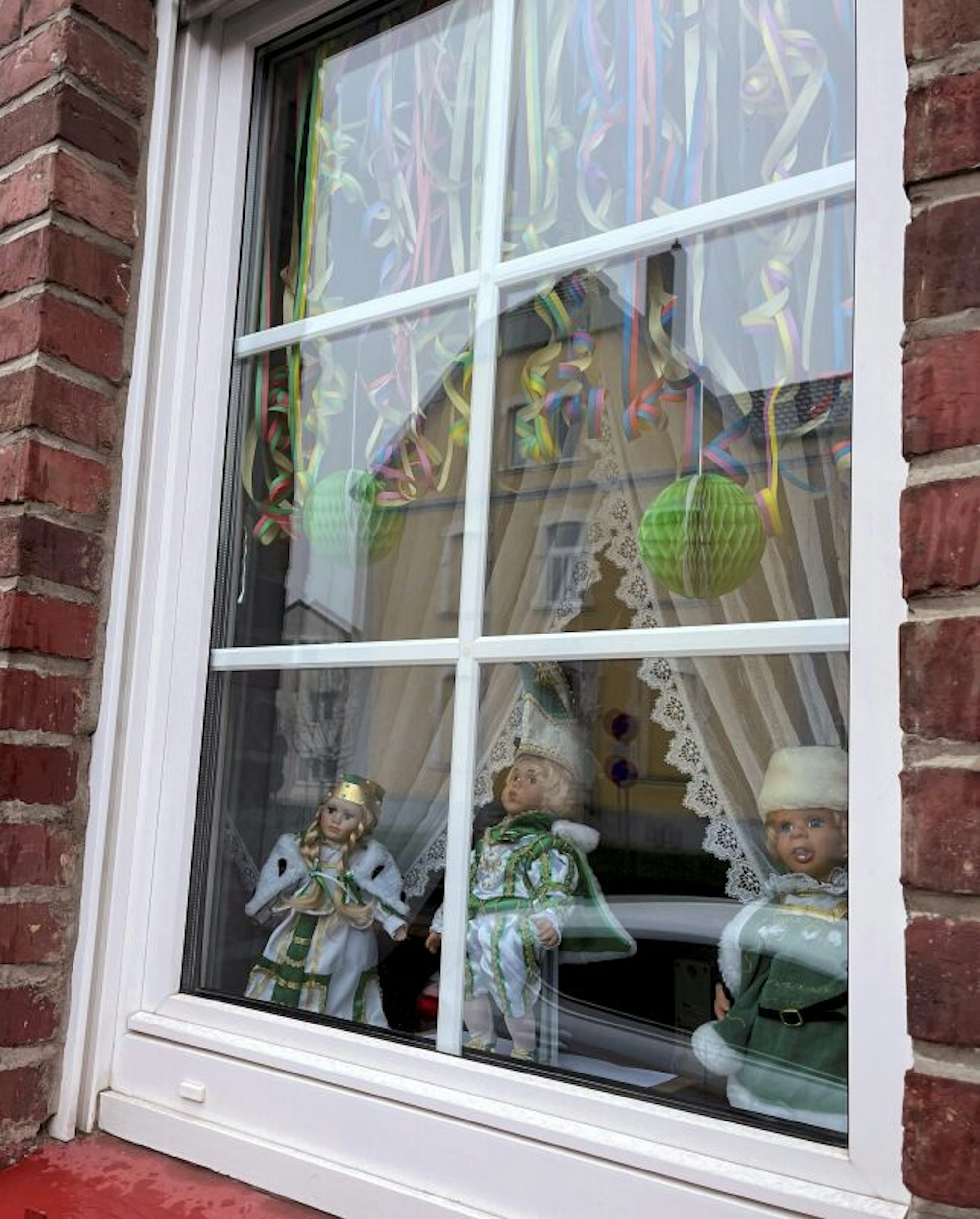 Das Fenster von Liblars KG-Präsident Josef Baratella ist eines von vielen im Ort, die an Karneval erinnern.