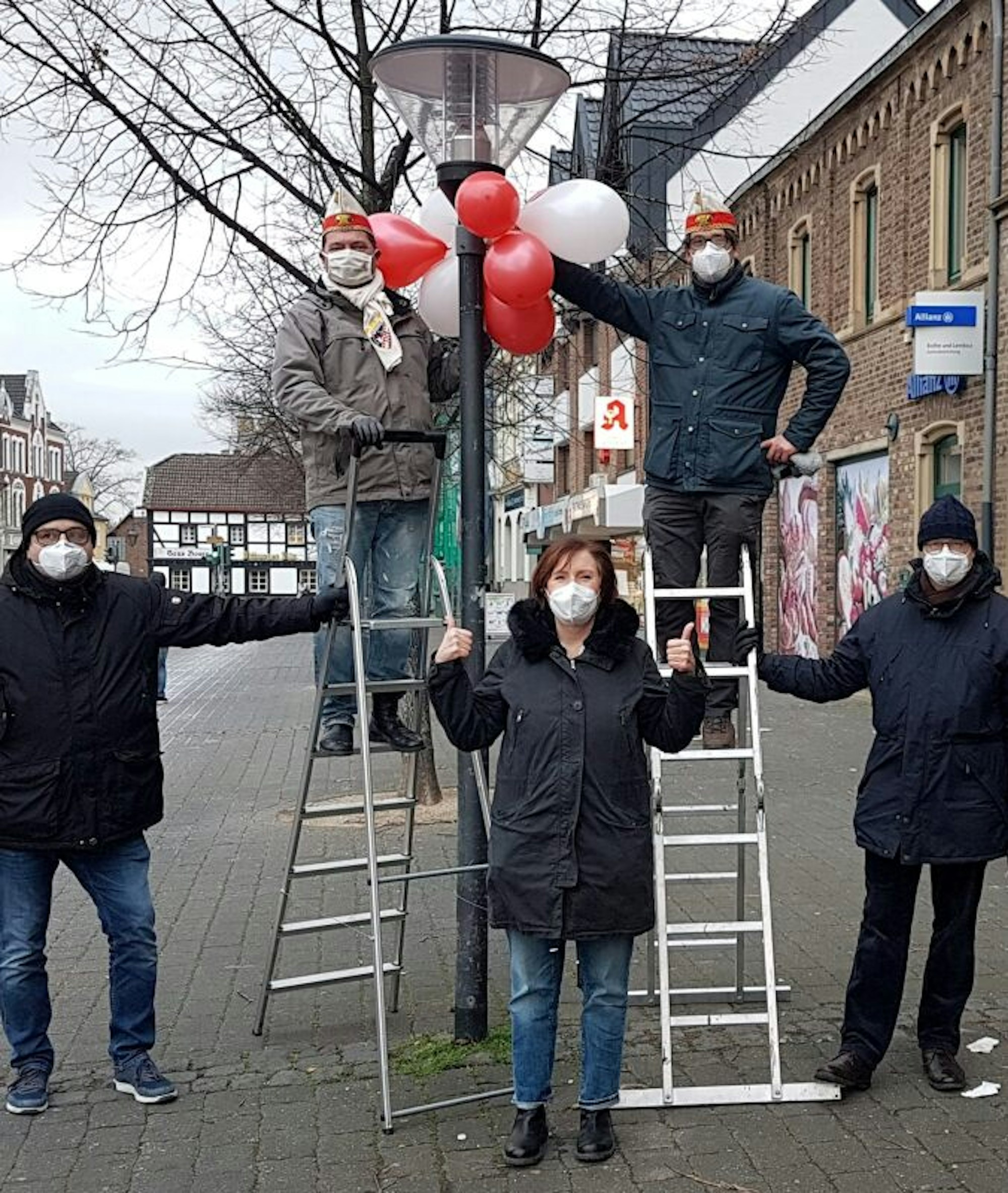 Auf dem Markt in Lechenich befestigten Gardisten Luftballons.