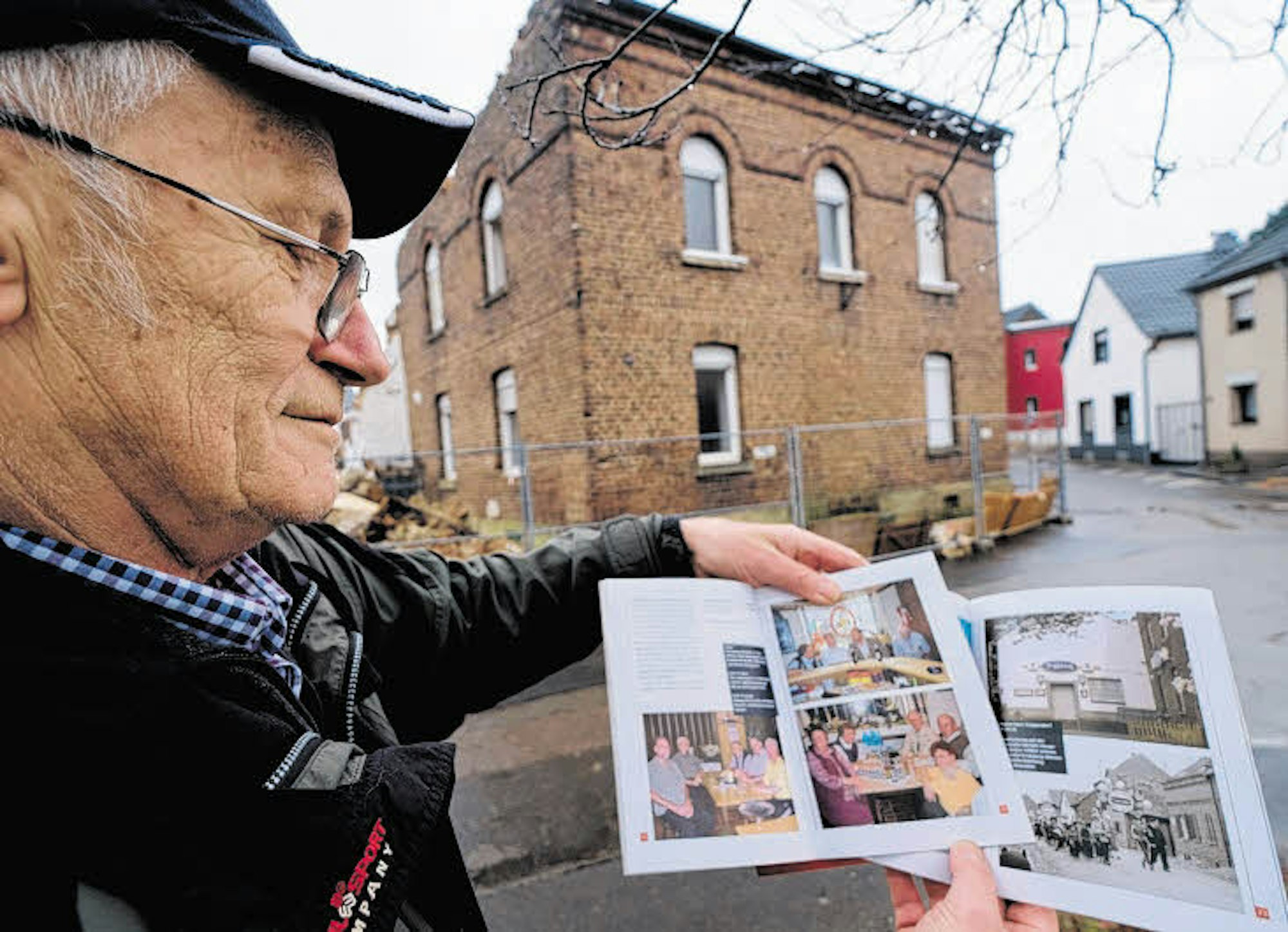 Bilder vom einst munteren Treiben im Haus Roggendorf zeigt Ortsbürgermeister Dirheimer vor der Ruine des Backsteinbaus.