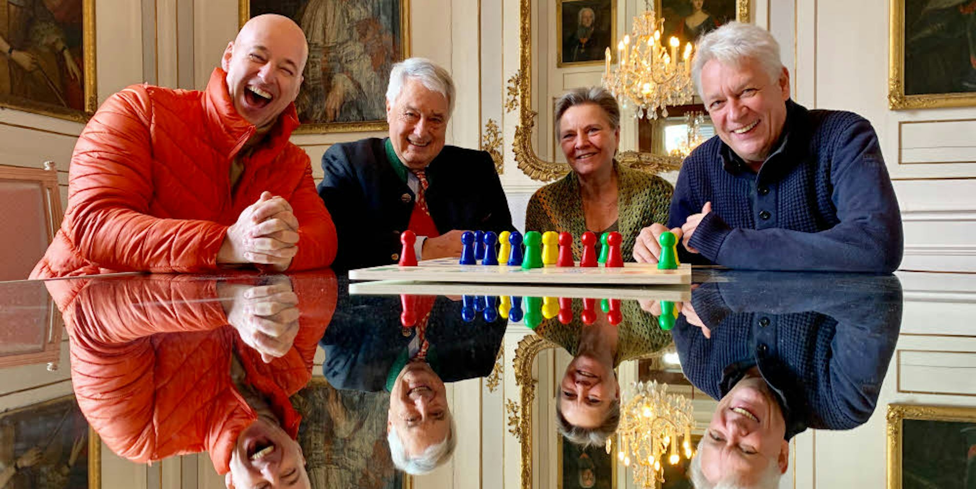 Dumm nur, dass wir beinahe gescheitert wären mit unserer Idee, auf Schloss Gymnich eine Runde „Mensch ärgere dich nicht“ zu spielen: mit Schlossherrn Gerd Overlack, dem Schauspieler Jim Boeven und einem Karnevalsstar im Ruhestand. Letzterer meldete sich in letzter Sekunde krank. „Mensch ärgere dich nicht“ zu dritt? Kommt nicht in Frage. Da muss halt Redaktionsleiter Bernd Rupprecht dran glauben.