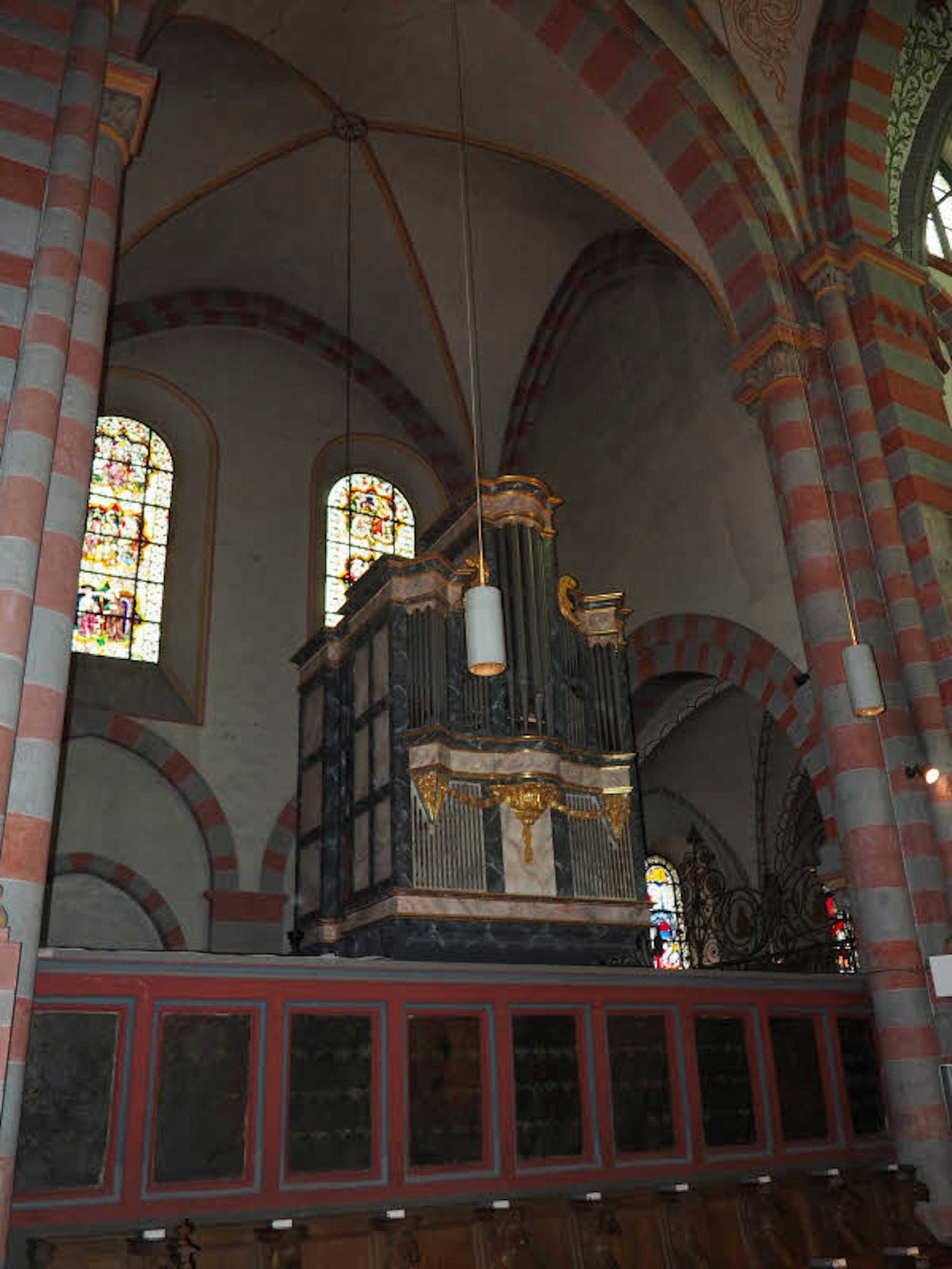 Die Chororgel wird ersetzt. Die neue wird an den Westwänden der beiden Seitenschiffe (Foto links, über dem Bogen) hängen.