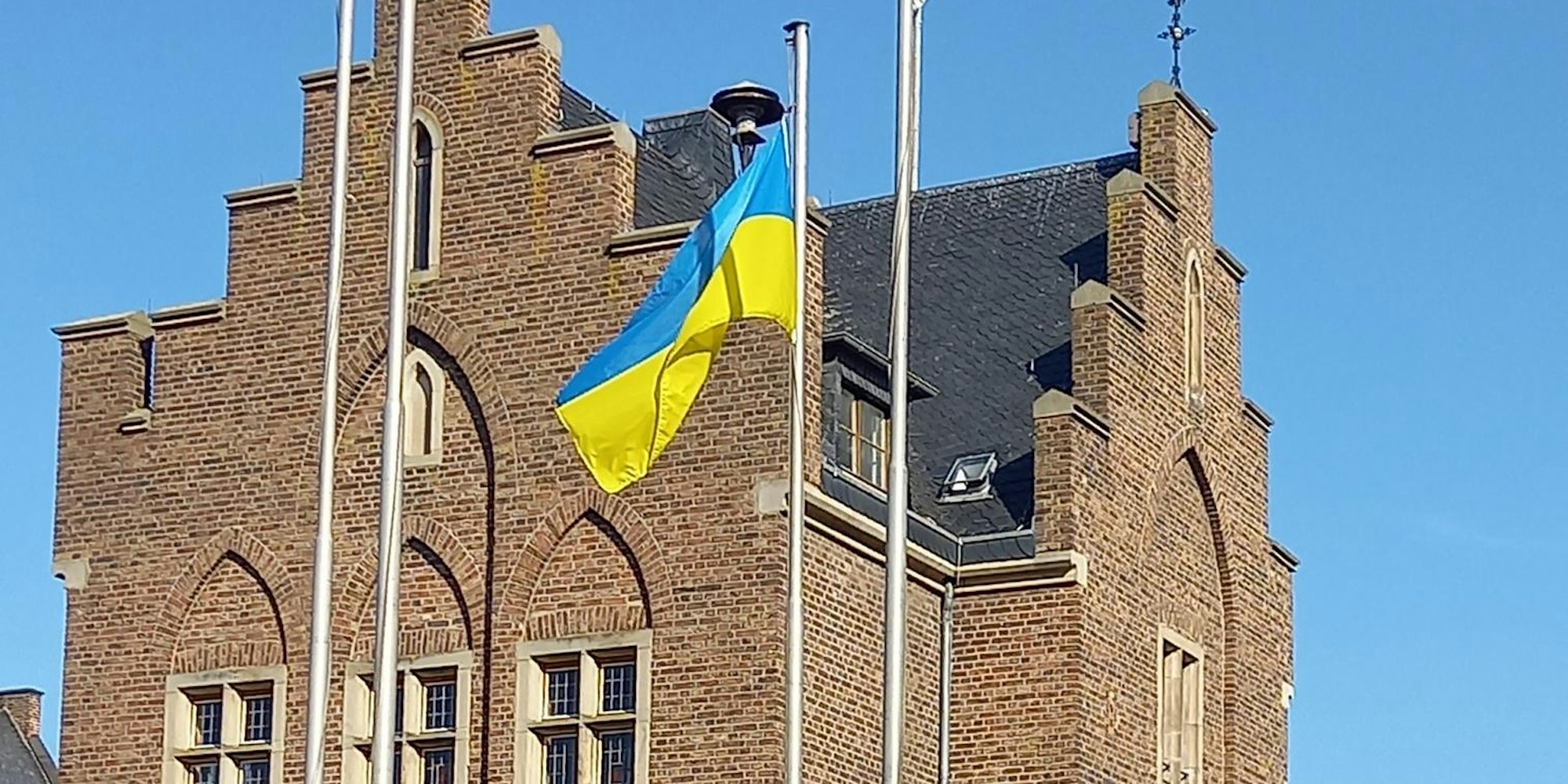 Die ukrainische Flagge weht am Lechenicher Rathaus.