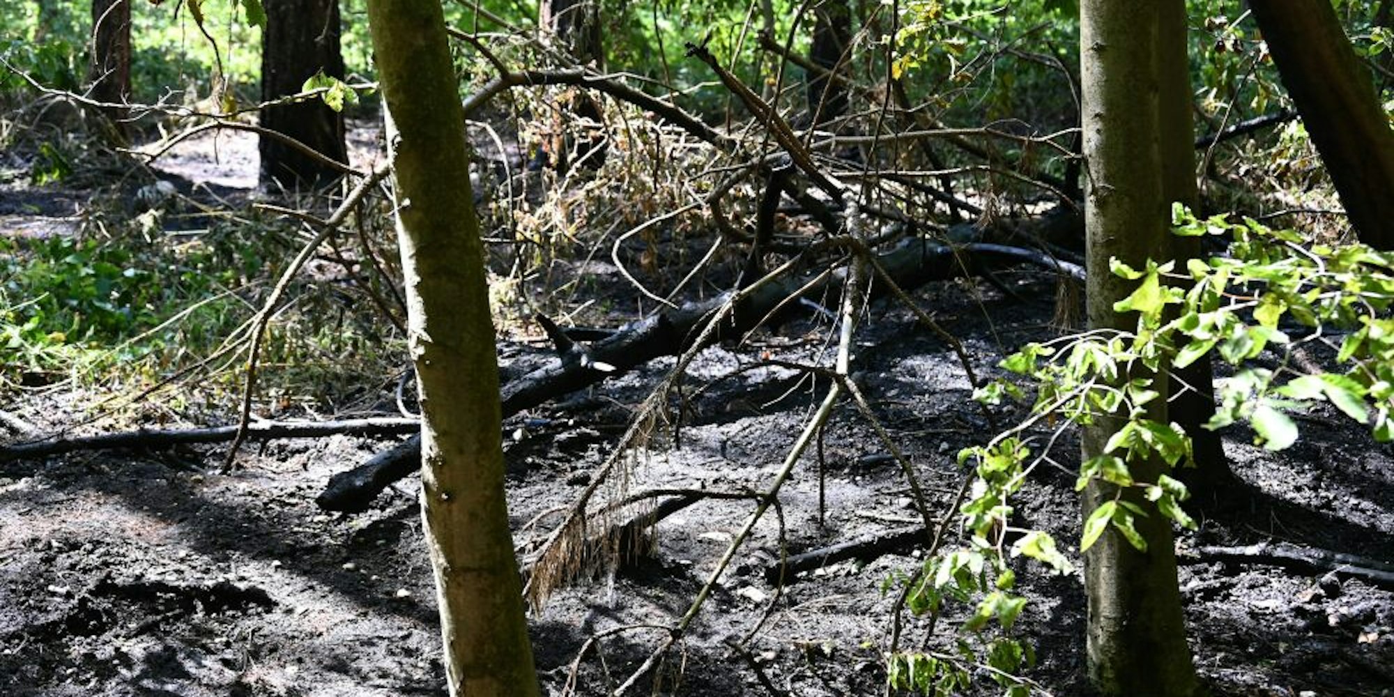 In Erftstadt-Liblar brannte der Wald auf 70 Quadratmetern Fläche. Die Feuerwehr konnte das Feuer schnell löschen.