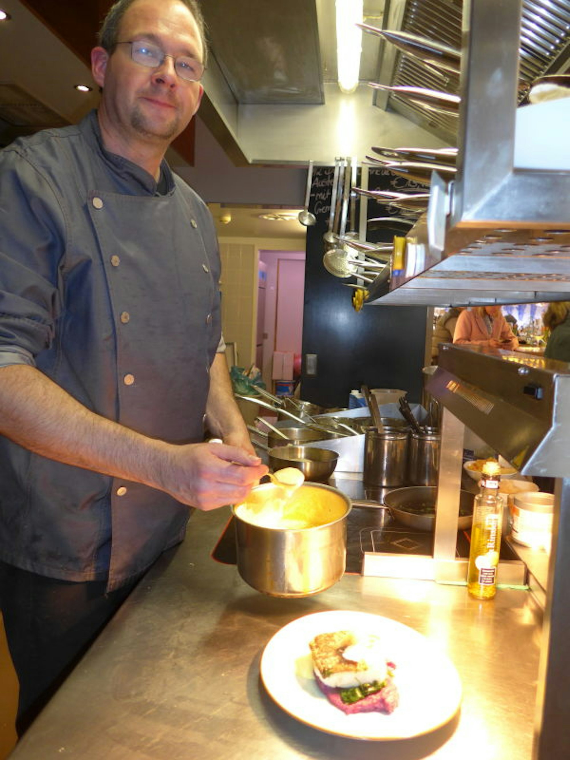 Heiko Müller leitet die Küche des Bistros im Frischeparadies in Hürth.
