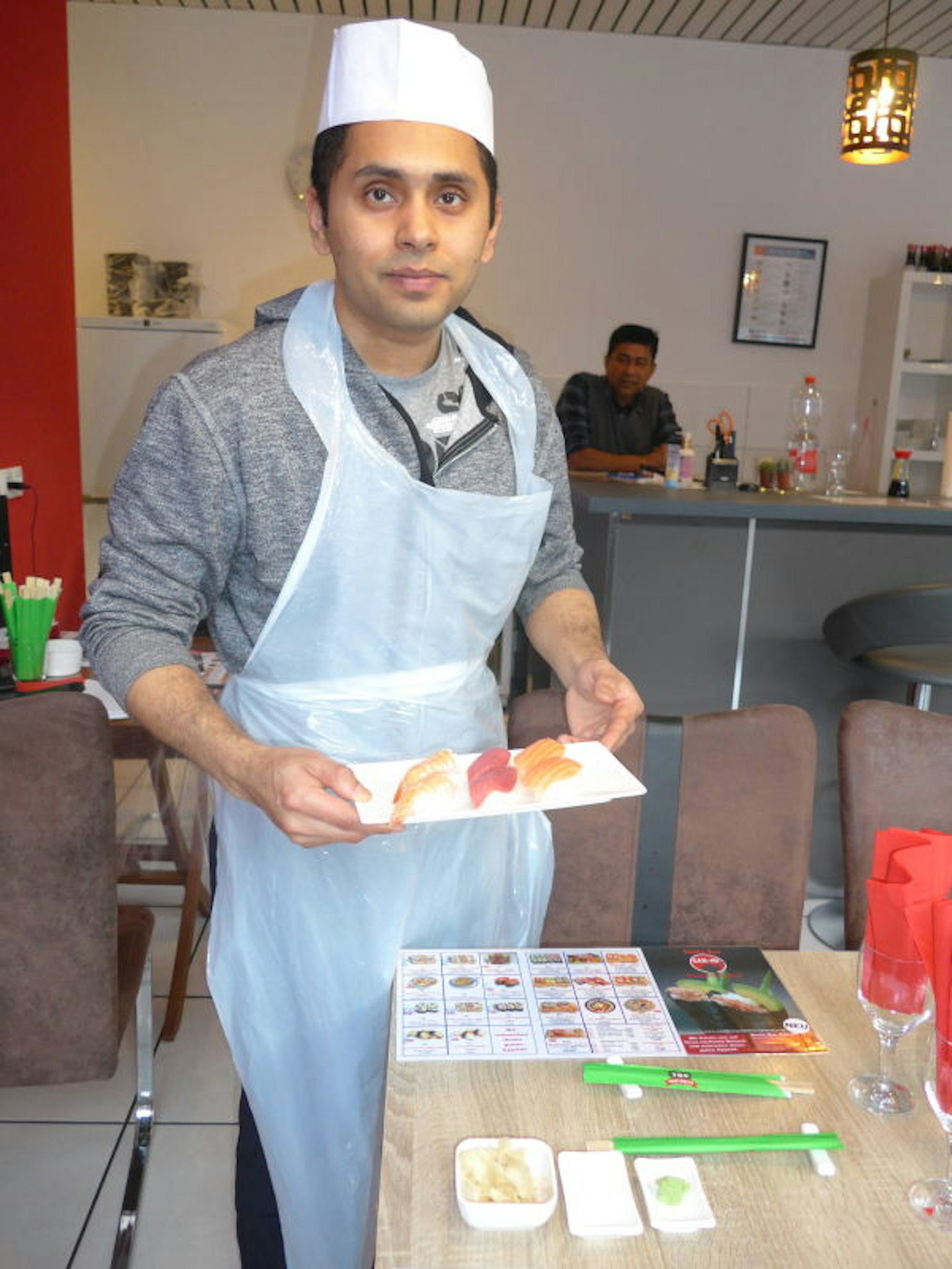 Shihang Zhen ist Service-Leiter im Brühler Japan Haus, auch Imran Hossain bietet in seinem kleinen Bistro Gan-Mi in Pulheim Sushi an.