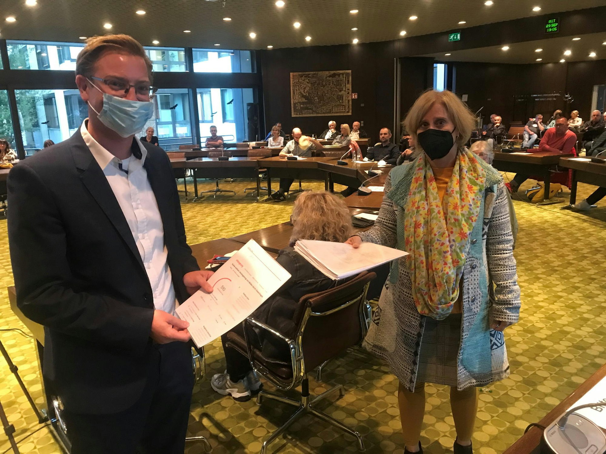 Bianca Klemko überreichte die Unterschriften an den Technischen Beigeordneten Robert Lehmann.