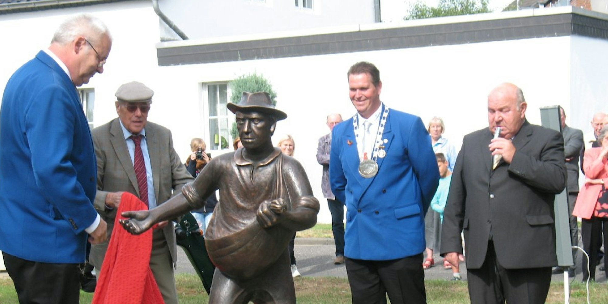 Frechen – Am vergangenen Sonntag wurde das Denkmal „us Karl“ eingeweiht, das die Figur des Frechener Künstlers Olaf Höhnen „Der Saemann“ zeigt und an den verstorbenen Künstler erinnern soll. Dass die Skulptur aufgestellt wurde, ist hauptsächlich dem Engagement des Frecheners Karl Baumann zu verdanken. Auf der Einladung zu dessen 90. Geburtstag wurden die Gäste im vergangenen Jahr gebeten, keine Geschenke mitzubringen, sondern dem Förderverein Hücheln Geld zu spenden. Der Förderverein hatte Karl Baumann zum Geburtstag eine kleine Figur des „Saemanns“ von Höhnen geschenkt, worauf Baumann die Idee hatte, die Figur im Großformat erstellen zu lassen, um sie in Hücheln zu präsentieren. Er verzichtete auf Geschenke und bat um Spenden. „Das war ein Jahr voller Vorfreude für mich. Und heute ist endlich der Tag der Einweihung“, so Baumann.