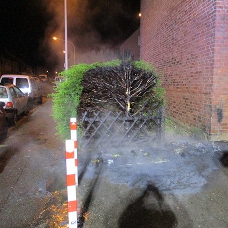 Wie die Polizei auf Anfrage bestätigte, standen in der Nacht zum Mittwoch an drei Stellen im Stadtgebiet erneut Mülltonen in Flammen, und zwar in der Zeit von 3.25 bis 4.05 Uhr in den Straßen Am Lindchen und An der Mergelskaul. Durch das Feuer wurden neben den Müllcontainern auch ein Zaun, eine Hecke, ein Sichtschutz aus Holz und ein geparktes Auto beschädigt.