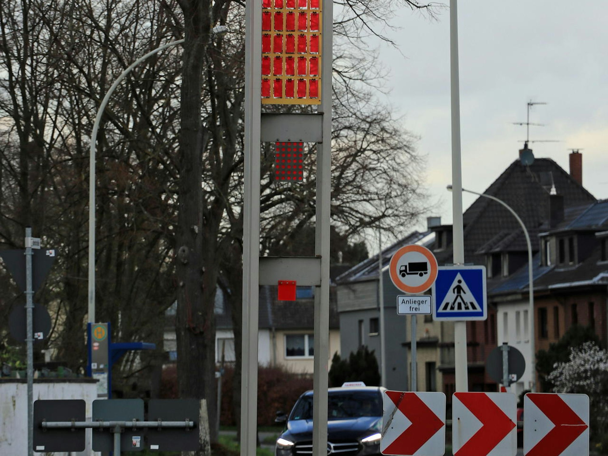 Frechen – Das Kunstwerk ist unter dem Namen „Blotenbergs Gardine“ bekannt. Die sechs Meter hohe Stele aus Edelstahl, die mit roten Acrylplättchen versehen ist, zierte über zwei Jahrzehnte lang den Kreisverkehr an der Kreuzung Lindenstraße/Krankenhausstraße. Die Skulptur, die der Künstler Jan Schlesinger geschaffen und der frühere Realschullehrer und SPD-Stadtverordnete Gerd Blotenberg gestiftet hat, musste jetzt jedoch abmontiert werden.