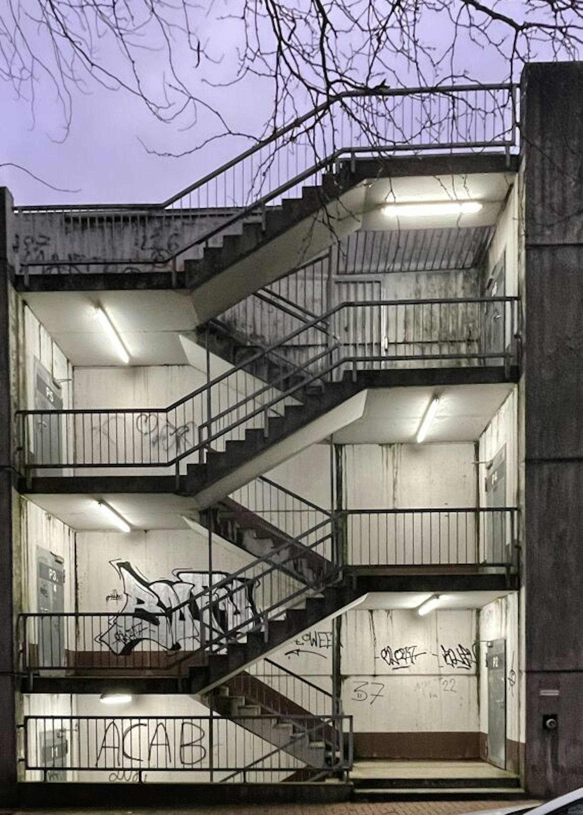 Das Parkhaus direkt neben dem Frechener Stadtsaal ist allgemein in keinem ansehnlichen Zustand.