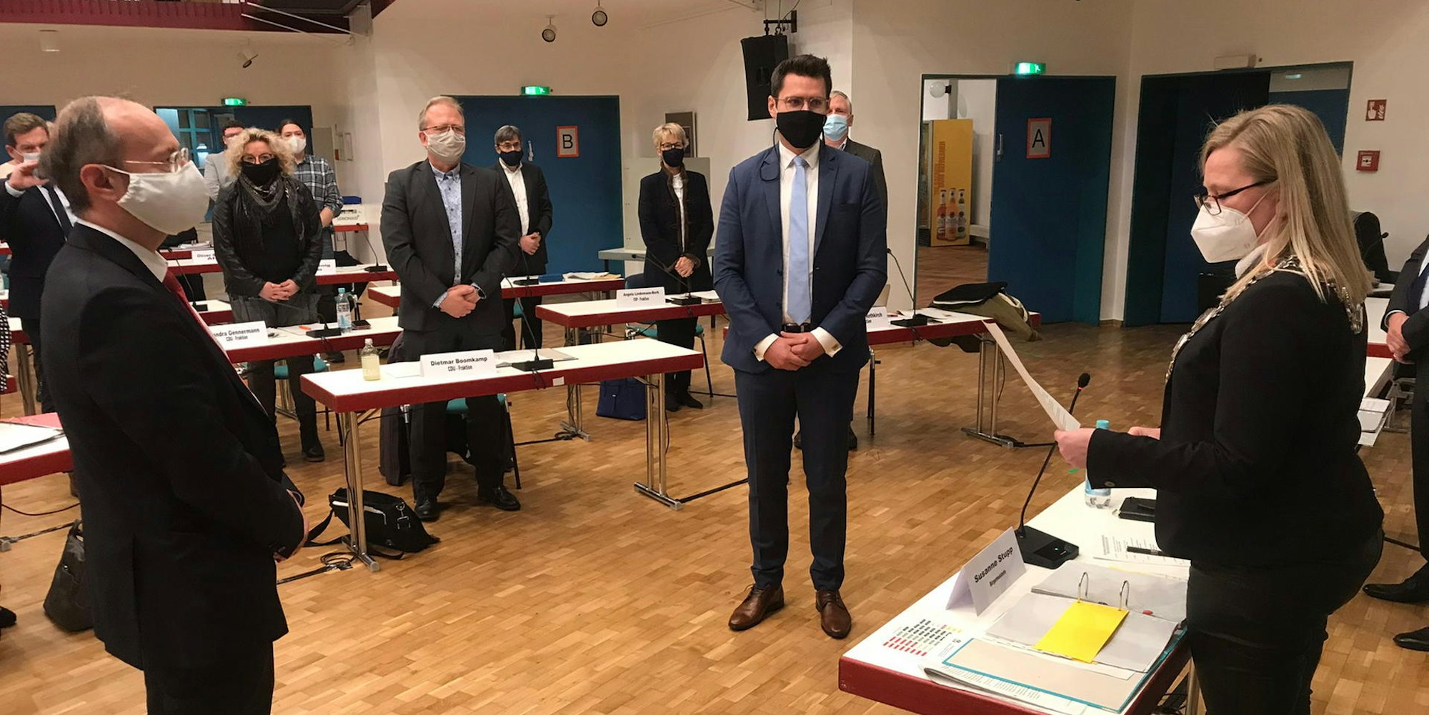 Zu stellvertretenden Bürgermeister wurden einem gemeinsamen Vorschlag zufolge Thomas Okos (CDU) und Carsten Peters (SPD) gewählt. Bei fünf Gegenstimmen und drei Enthaltungen sprachen sich 43 Stadtverordnete für die beiden aus.