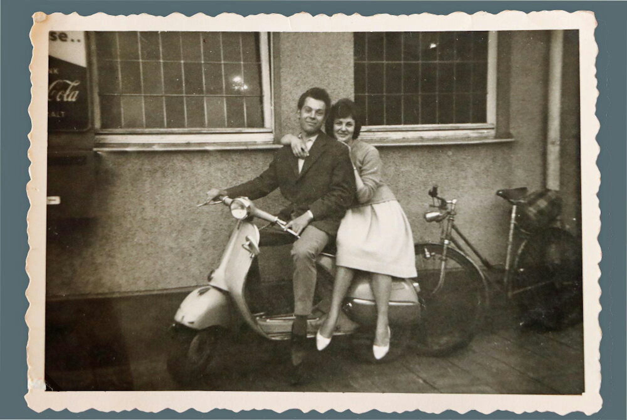 Stolz war „Club-Chef“ Hermann Gimborn auf seinen Motorroller, mit dem er seine spätere Frau Marlies chauffierte.