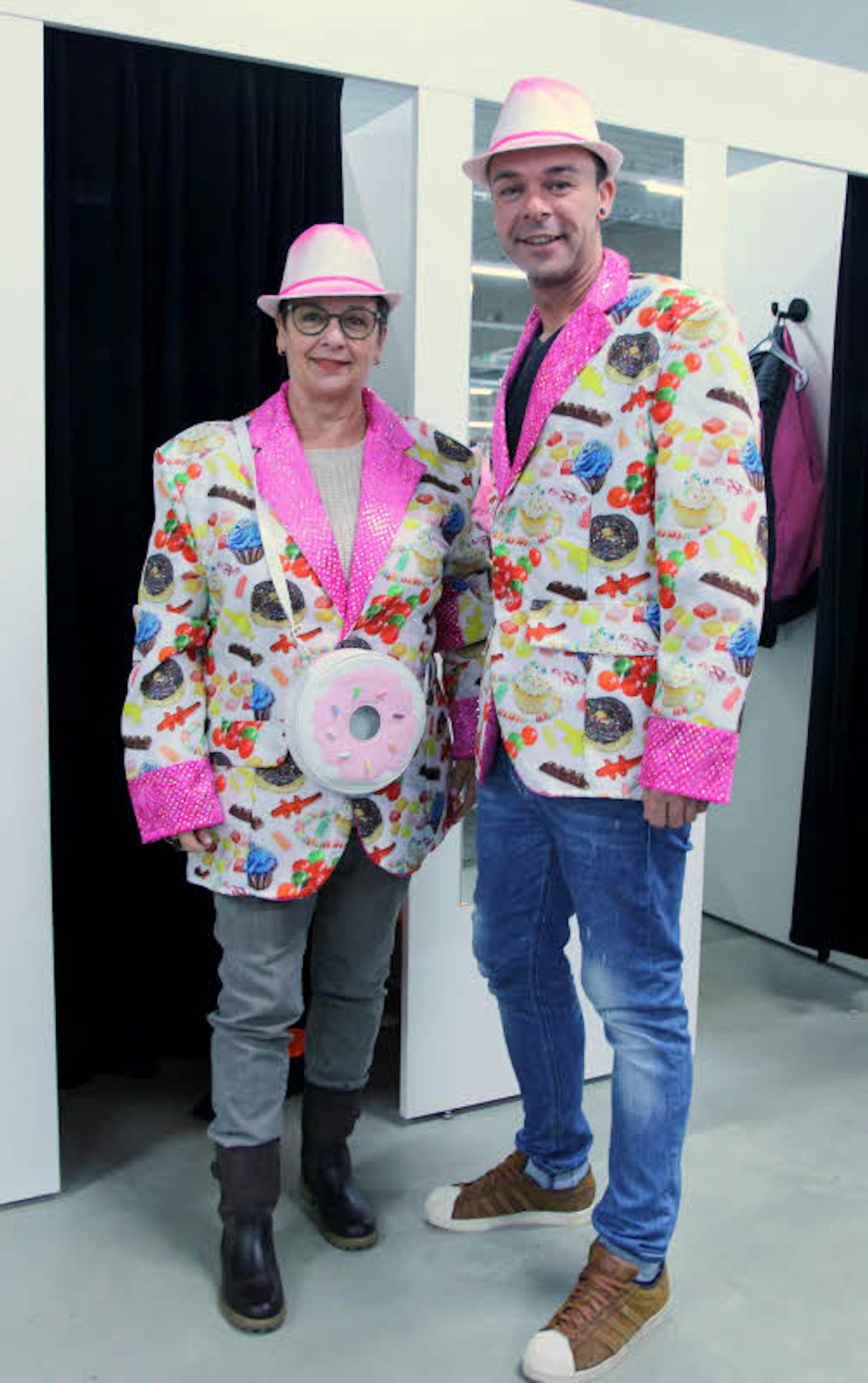 Marco Breuer und seine Mutter Erika Schnettker im Donuts-Outfit.