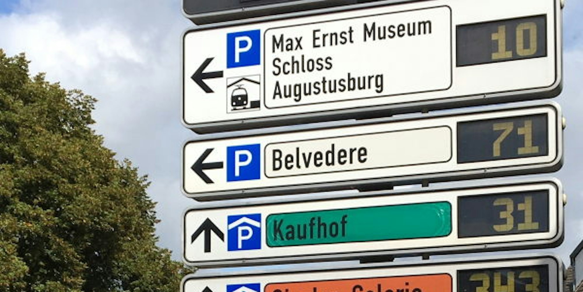 In Brühl gibt es bereits ein Parkleitsystem. In Frechen soll die Errichtung solcher Hinweisschilder nun geprüft werden.