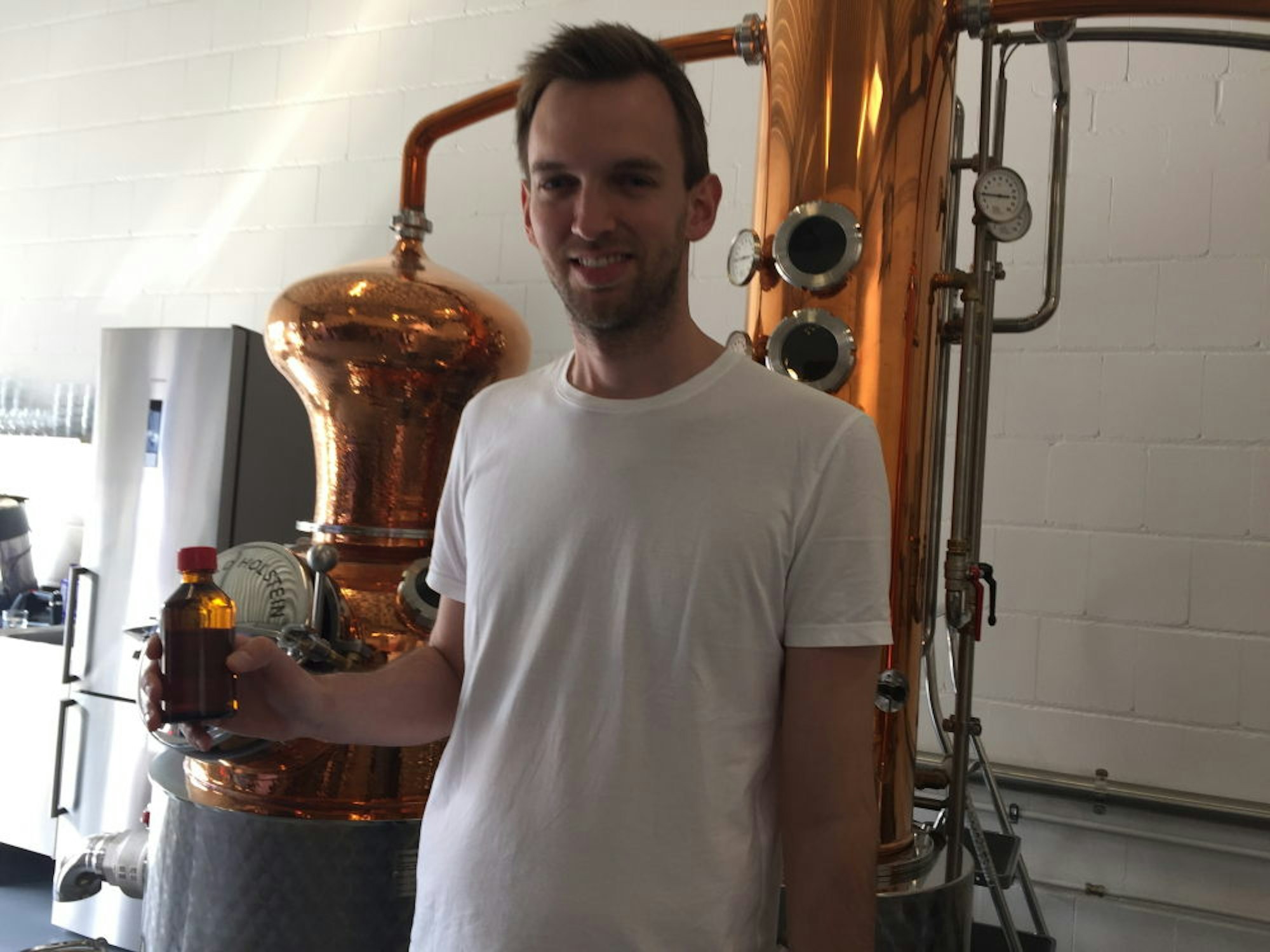 In seiner Gin-Brennerei stellt Benedikt Brauers derzeit Desinfektionsmittel her.