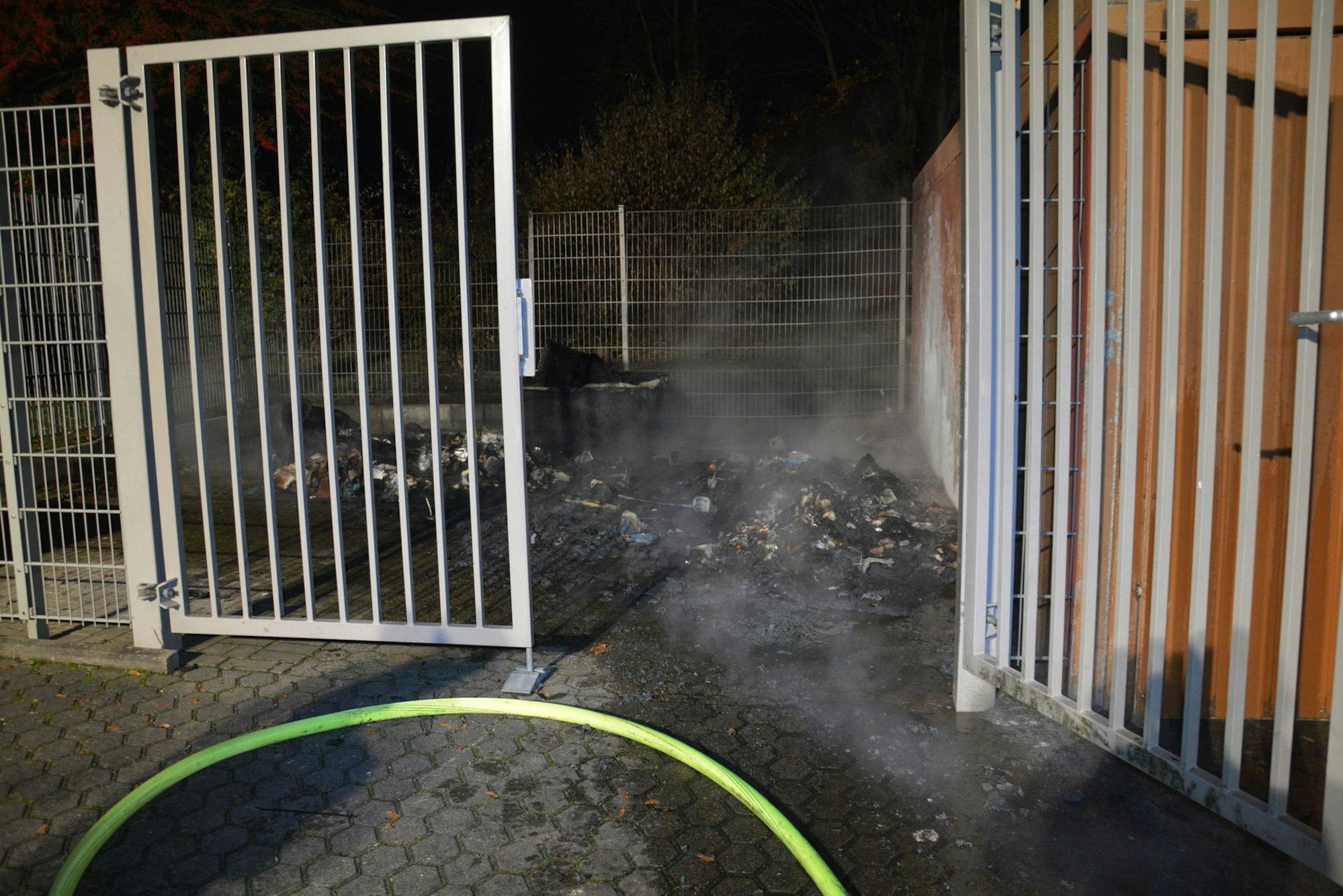 Vor der verschlossenen Eingangstür der Grillhütte zündete der Täter einen Großcontainer mit Papier an.