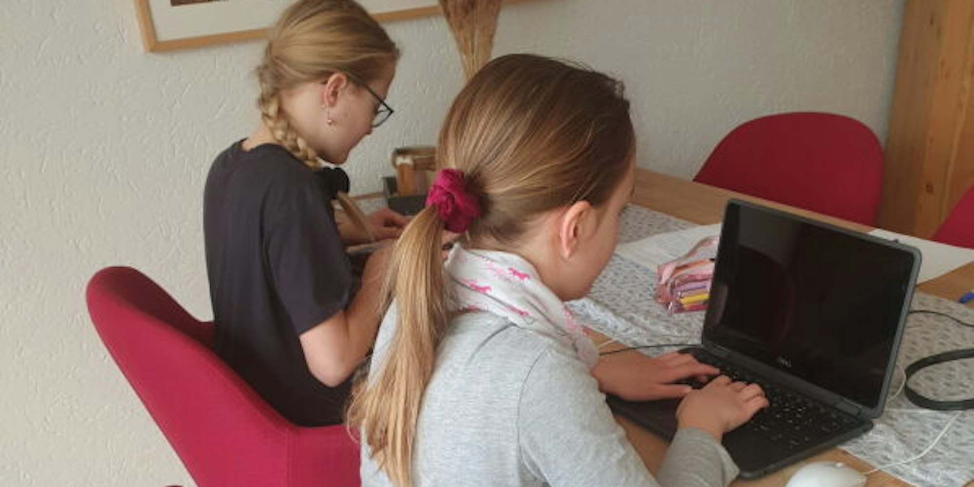 Zwei Schülerinnen lernen im Distanz-Unterricht an ihren digitalen Endgeräten. Die Ausstattung in den Kommunen im Kreis sei aber noch sehr unterschiedlich, berichtet die Lehrergewerkschaft VBE.