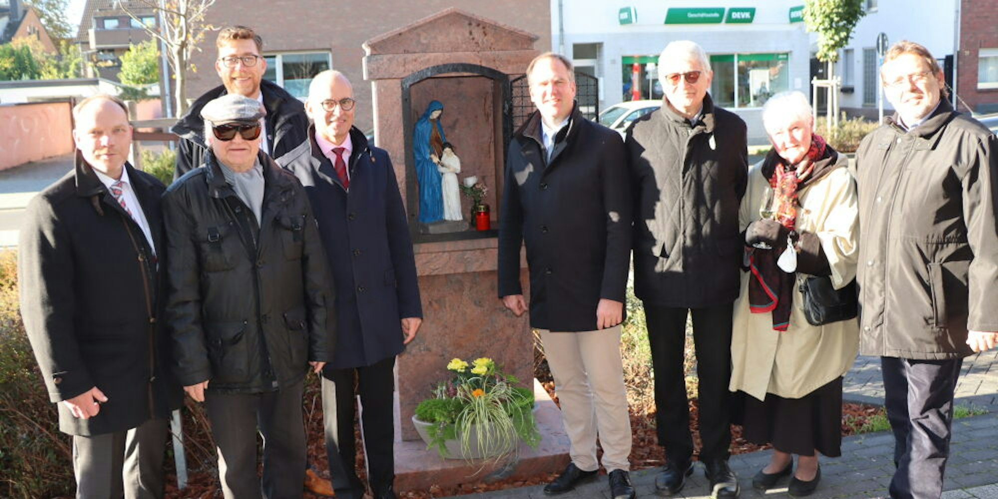 Bürgermeister Dirk Breuer (4.v.r.) und viele andere feierten die Einweihung des neues Bildstocks.