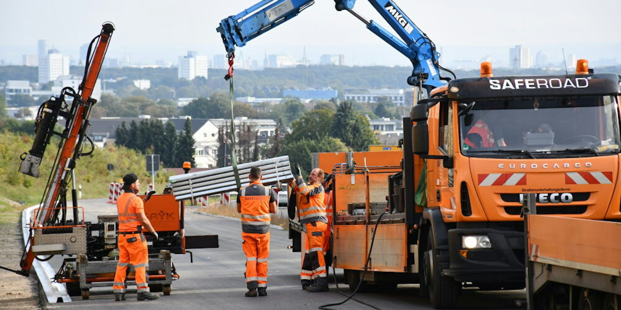 Noch rund vier Wochen werden die Fahrbahnmarkierungsarbeiten dauern. Am Montag wurden die Leitplanken geliefert, die ebenfalls noch montiert werden müssen, bevor auch die letzten beiden Spuren der 500 Meter langen Zufahrt freigegeben werden können.
