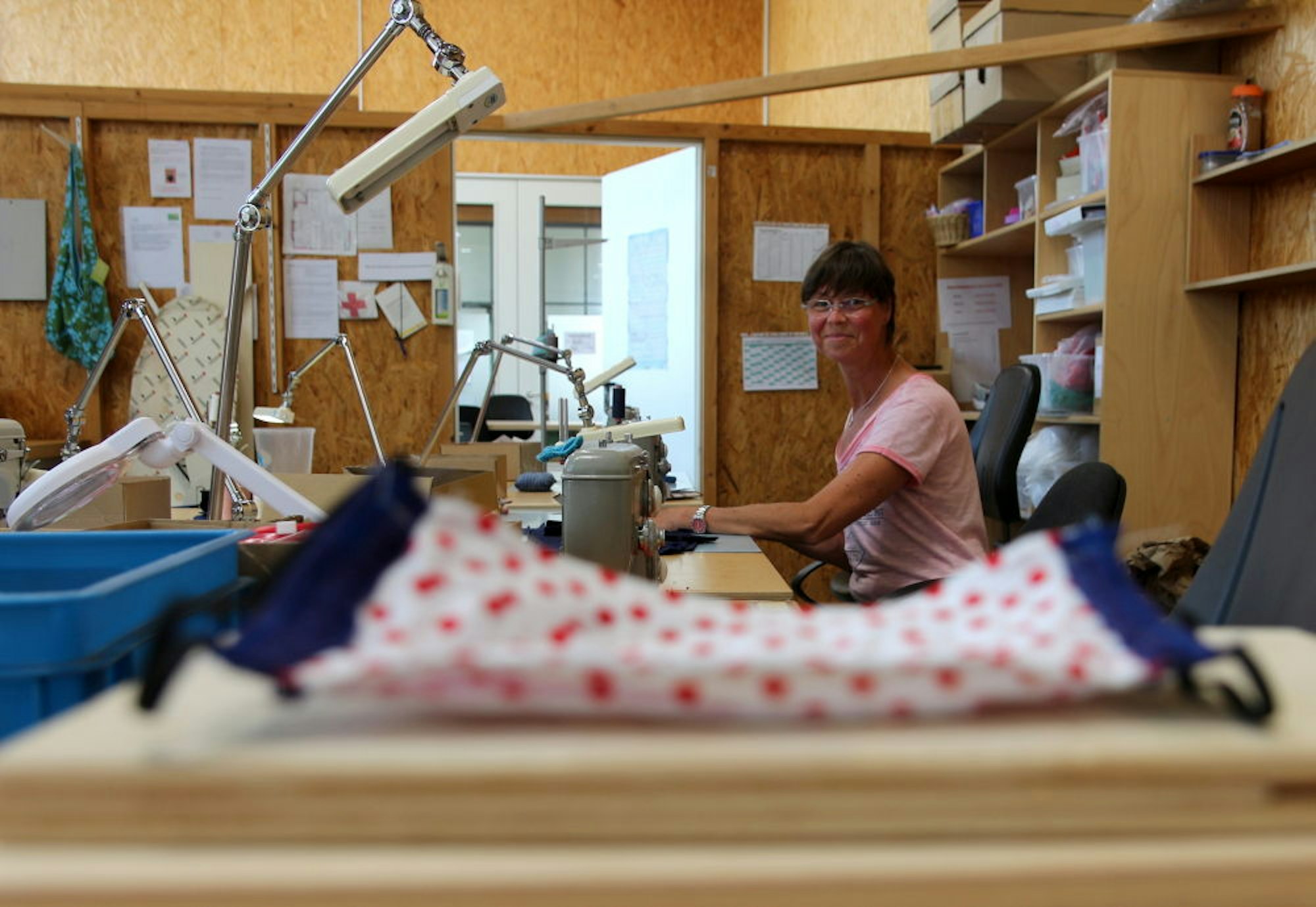 Den aktuellen Betrieb in den Werkstätten halten die Betreuerinnen und Betreuer selbst am Laufen. Sie fertigen in der Schreinerei Insektenhotels für die Kunden, züchten Salatpflänzchen oder nähen wie Grit Landsberg Mund- und Nasenschutze, auch für die Mitarbeiter, wenn sie ihre Tätigkeit in den Werkstätten wieder aufnehmen können.