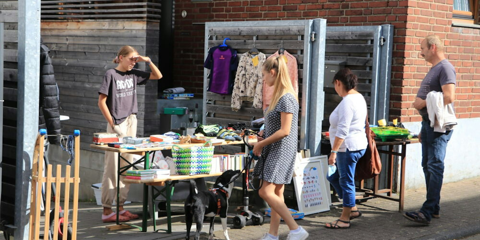 Da gab es ein so gut wie gar nicht benutztes Geschirr mit Goldrand. Bestecke, Teller und Tassen in allen Formen wurden ebenso feilgeboten, ebenso Bekleidung für groß und klein. An manchen Ständen musste man befürchten, dass die Bewohner in den nächsten Tagen im Dunkeln sitzen werden, so viele Lampen und Leuchtkörper lagen im Vorgarten. Auch ein Schlitten war im Angebot, an anderer Stelle dachte man schon weiter und offerierte den Vorbeigehenden Karnevalskostüme. Auch Bilder, Wandschmuck und viele andere Dinge konnten erworben werden, wobei an manchen Ständen vor allem die Kinder ihre Freude hatten. Und dann war da noch der Papa, der für seinen erst ein paar Monate alten Nachwuchs schon mal ein Bobby Car mit Anhänger kaufte.
