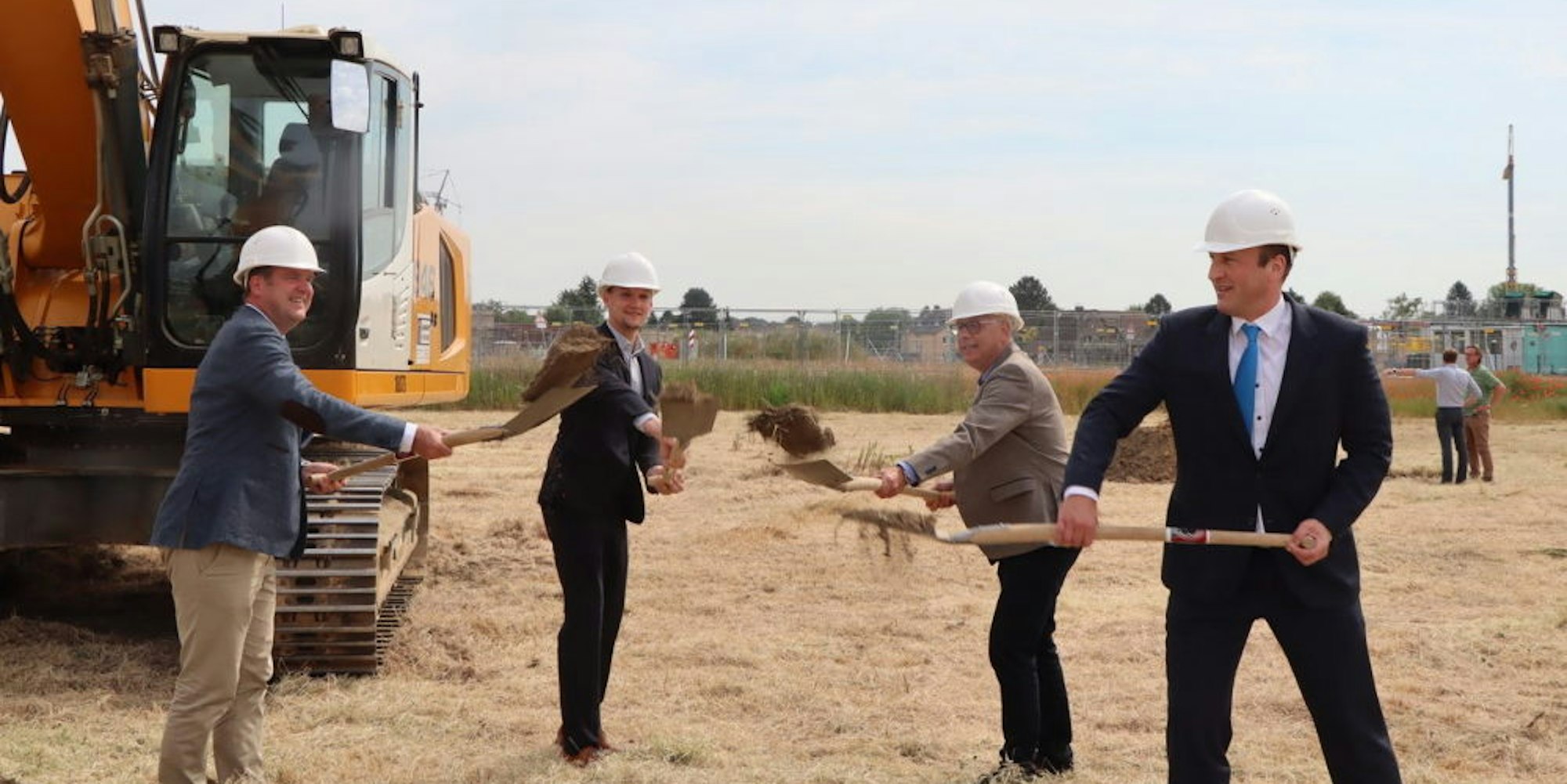 Mit Abstand schritten Dirk Breuer, Laszlo Voß, Michael Offermanns und Björn Just (v.l.) zum ersten Spatenstich.