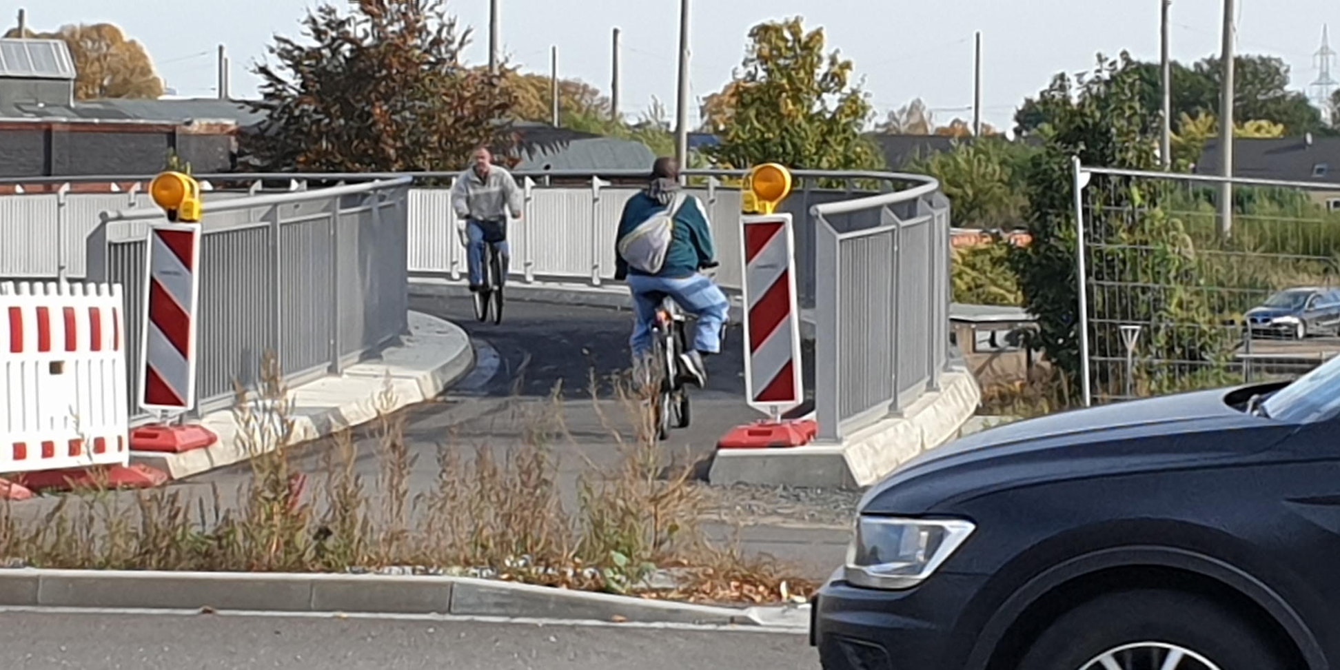 Die Grünen-Stadtverordnete Inge Cürten-Noack beklagt aber, dass den Radfahrern dabei „Hindernisse in den Weg gelegt“ würden. Zwar hat die Stadt beim Landesbetrieb Straßen bereits erreicht, dass es auf der Straße eine Querungshilfe gibt, die in der ursprünglichen Planung nicht enthalten war. Allerdings ist die Furt etwas versetzt platziert worden, so dass die Radfahrer nicht direkt von der Brücke auf die andere Straßenseite durchfahren können. Und das ist durchaus so beabsichtigt, teilte die Verwaltung auf eine Anfrage der Grünen im Planungsausschuss hin mit. Durch die „indirekte Führung“ würden die Radfahrer, die von der Brücke kommen, dazu gebracht, abzubremsen und zunächst ein Stück weit nach links zu fahren. So könnten sie Blickkontakt mit Autofahrern aufnehmen, die an dieser Stelle Vorfahrt hätten.